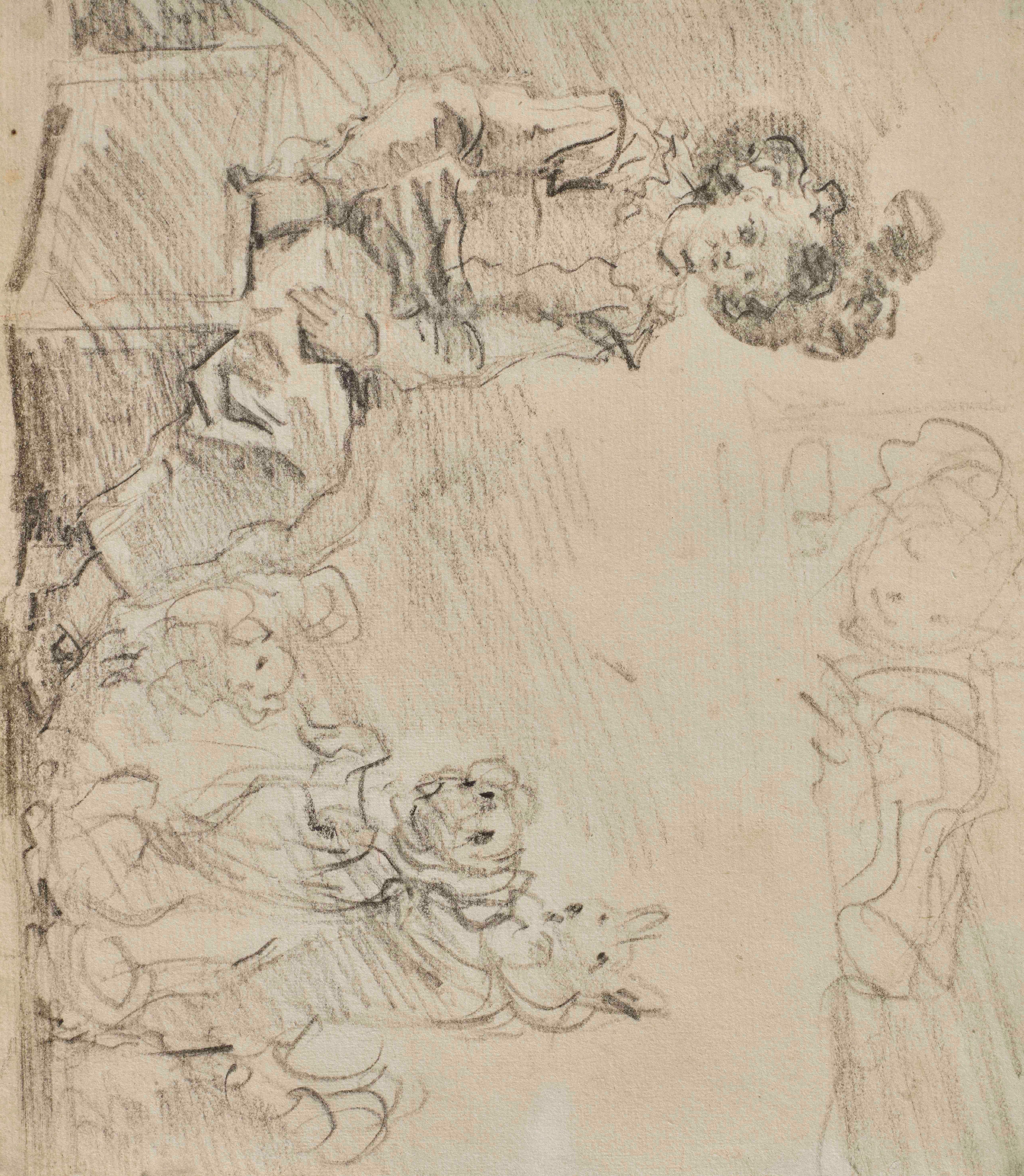 Pierre noire, sanguine et rehauts de craie blanche, H. 297 mm ; L. 436 mm