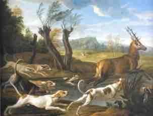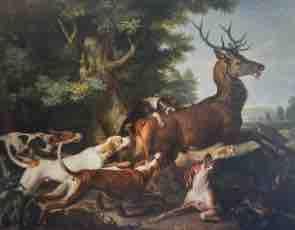 Arrivé à Paris à l'âge de douze ans, Desportes est mis en apprentissage chez Nicasius Bernaerts, peintre flamand de natures mortes Après un séjour en Pologne (1695-1696), en tant que portraitiste du roi Jean Sobiewski, il rentre en France et intègre l'Académie en 1699. Appelé à la cour en 1700 pour devenir peintre animalier, il exécute un grand nombre de tableaux représentant les chasses de Louis XIV et les chiens de sa meute, à l’image de l’Hallali de cerf de 1705 (fig.1). Pour les riches amateurs, sous la Régence, il exécute de grands tableaux de chasse, pleins de mouvement comme le Débuché du cerf de 1719 (fig.2) peint pour le Duc de Bourbon. La popularité d’Alexandre-François Desportes continuera à croître sous le règne de Louis XV qui, bien que faisant également appel aux talents de Jean-Baptiste Oudry, maintient Alexandre-François dans son rôle de portraitiste des chiens de la couronne. La majorité des études peintes seront acquises, en 1784, par la Manufacture de Sèvres.