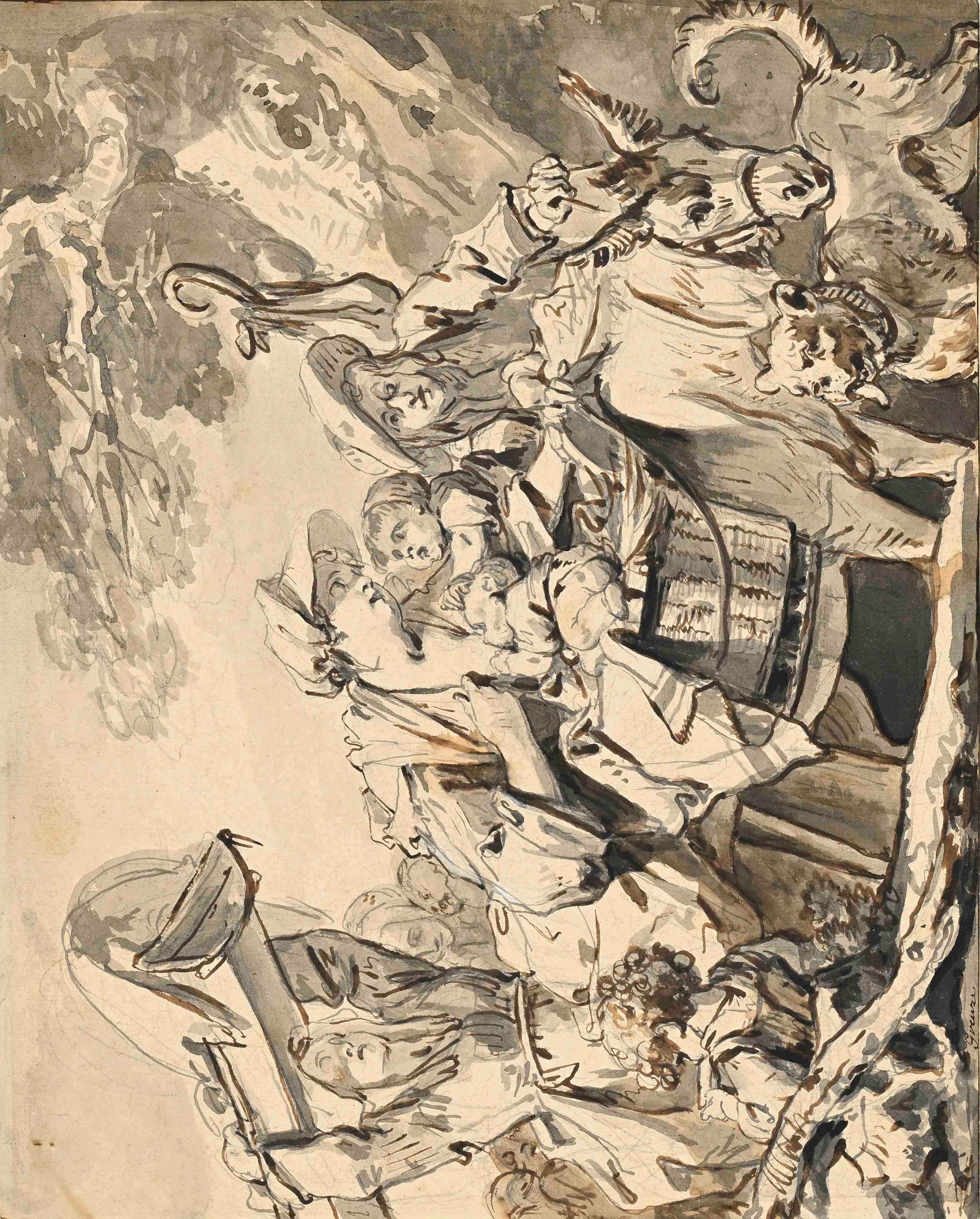 Plume et encres brune et grise, traces de pierre noire, H. 379 mm ; L. 233 mm