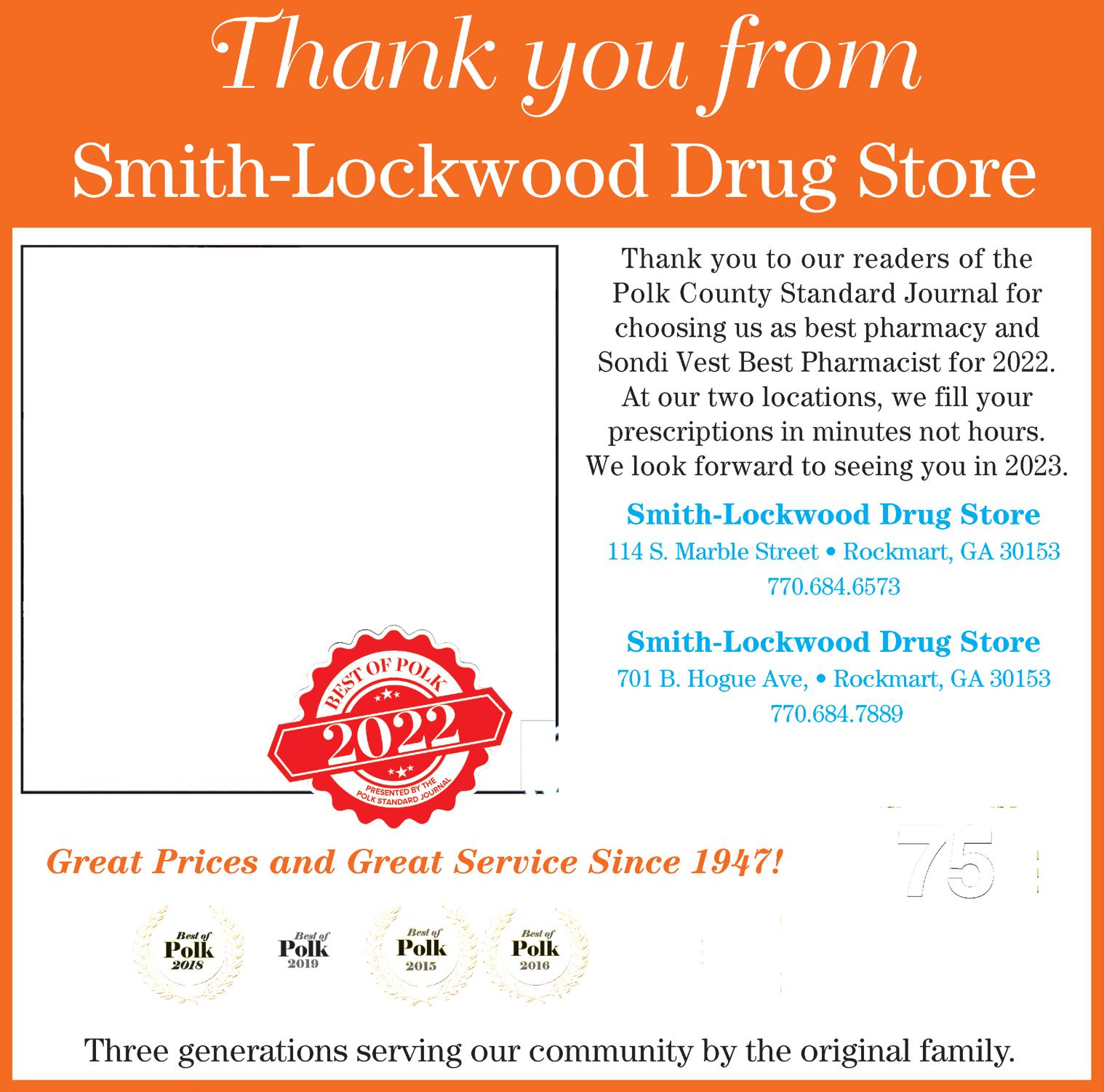 2 ♦ Wednesday, december 7, 2022 ♦ The Polk counT y sTandard Journal Dr. Heather Pryor Dr. Todd Robinson WE CARE COMPLETELY FOR THE HEALTH OF YOUR WHOLE FAMILY Dr. Robert Pyle Teri Jackson, NP-C HARBIN CLINIC FAMILY MEDICINE CEDARTOWN 770.749.5400 harbinclinic.com Dr. Karen Eberhart Congratulations to our award-winning providers in the Best Family Doctor, Best Pediatrician and Best Nurse Practitioner categories!