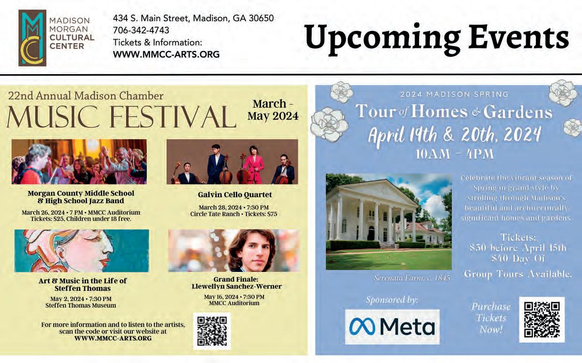 The 2024 Madison Spring Tour of Homes and Gardens is held throughout historic Madison from 10 a.m. to 4 p.m. daily. The self-guided tour will feature a selection of Madison’s treasured historic and modern homes. mmcc-arts.org
