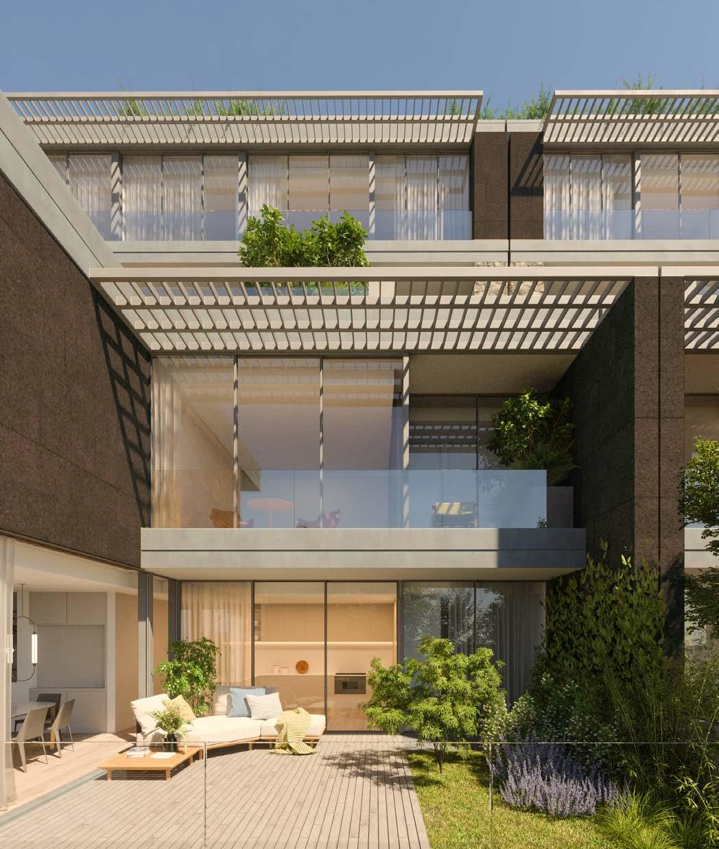 No segundo nível, a sala de 60 m2 tem acesso ao jardim privativo exterior, com áreas desde os 46m2.