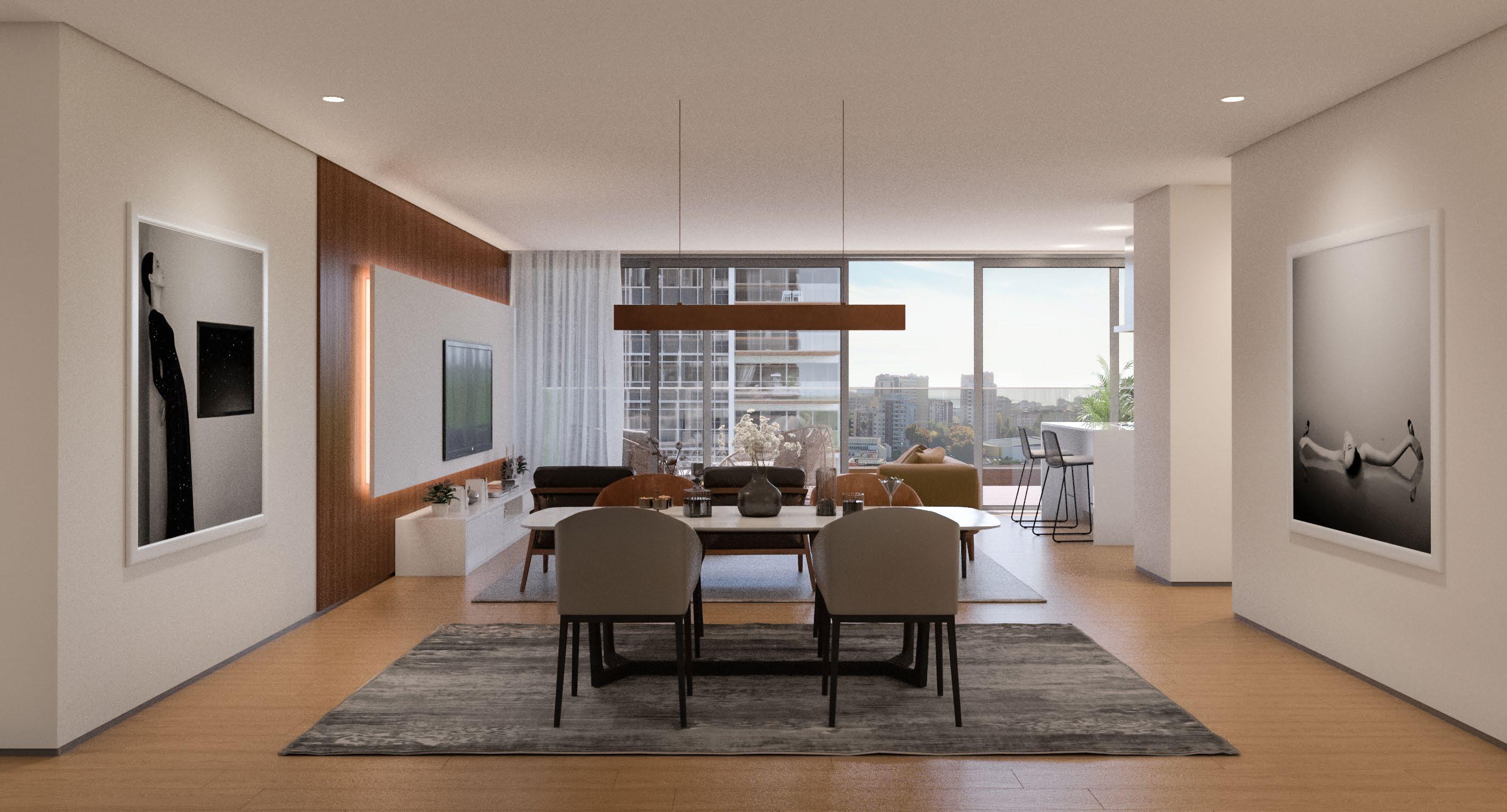 The apartments were studied in order to prioritize the rational functionality of the spaces, with the maximum use of areas, featuring the integration of the interior with the exterior, making the terraces and private gardens an extension of the house.