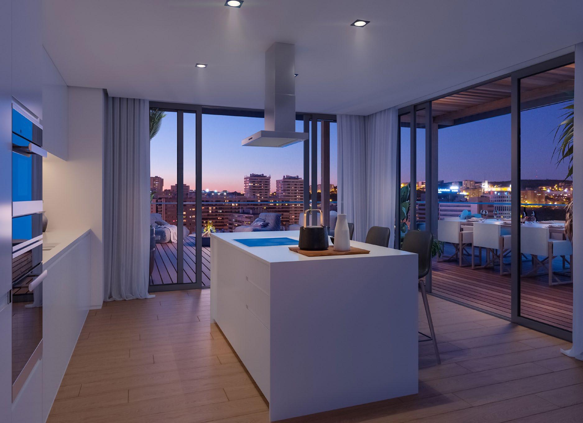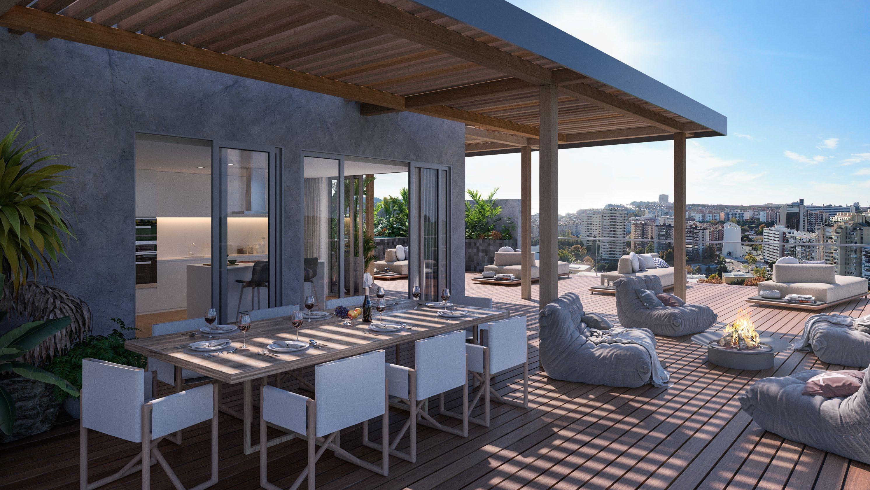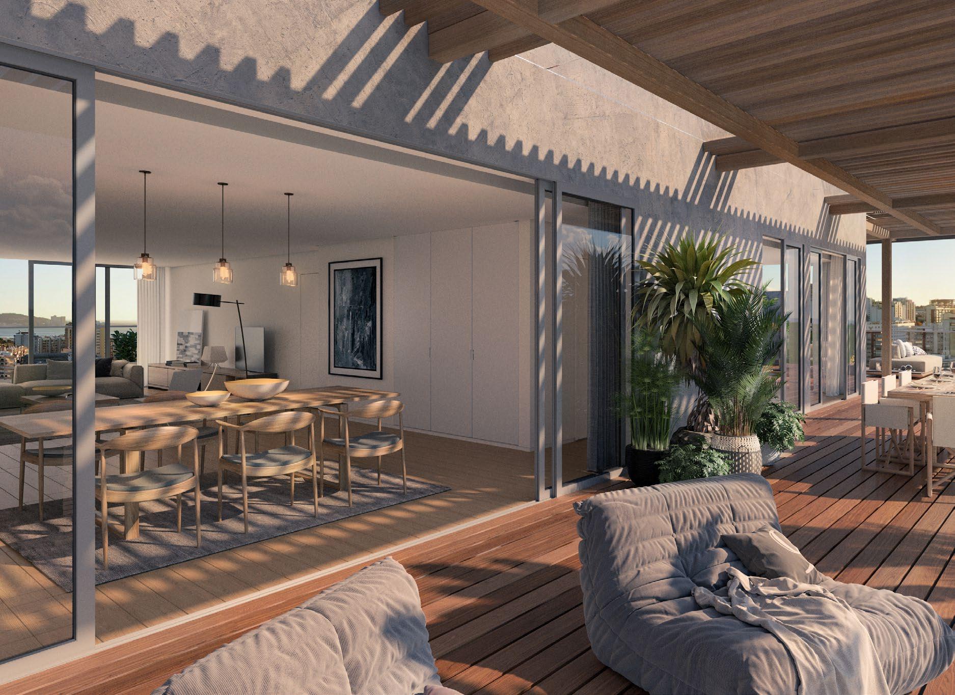 All apartments have a generous outdoor space, whether on terraces, balconies or gardens, translating the philosophy of this project: the total integration of the interior with the exterior.