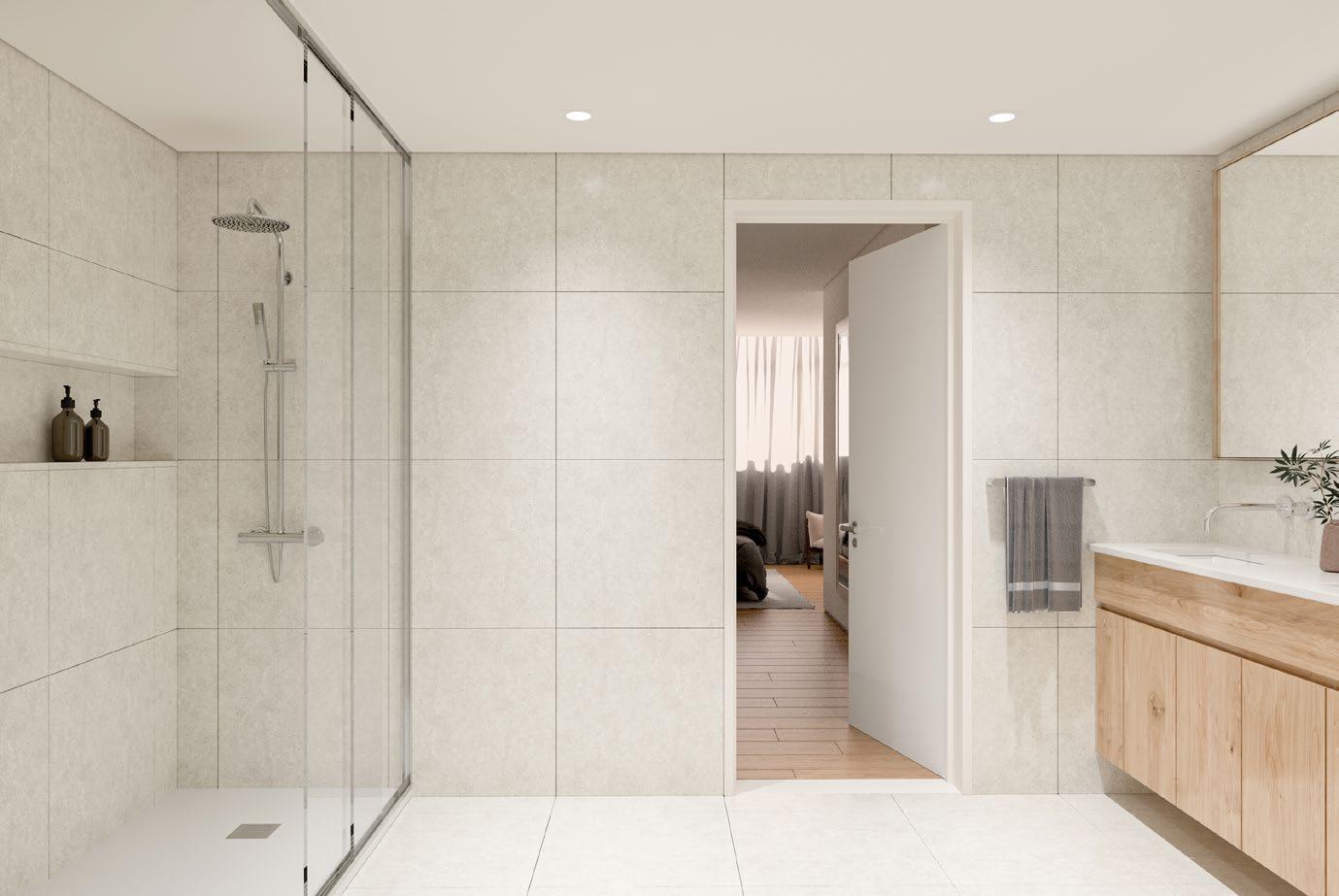 Todos os apartamentos são dotados de um generoso espaço exterior, seja em terraços, varandas ou jardins, ilustrando a filosofia deste projeto: a total integração do interior com o exterior.