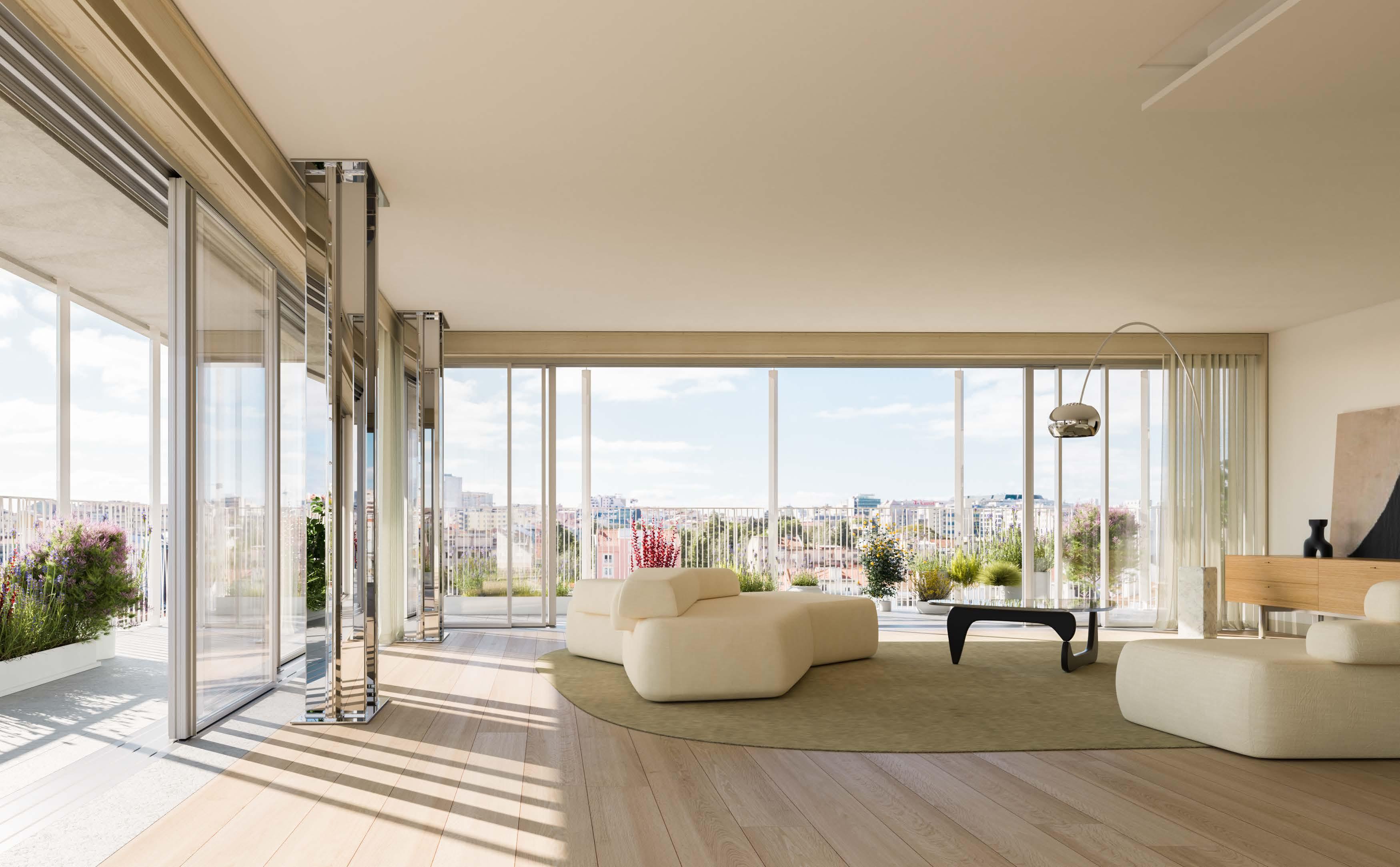 O Santos Dumont 46 conta com 3 penthouses com piscina privativa, terraços exclusivos e vista sobre a cidade, para quem quer viver ao máximo a sua casa. Estas características, aliadas aos amplos espaços interiores, fazem destes apartamentos únicos no panorama lisboeta.