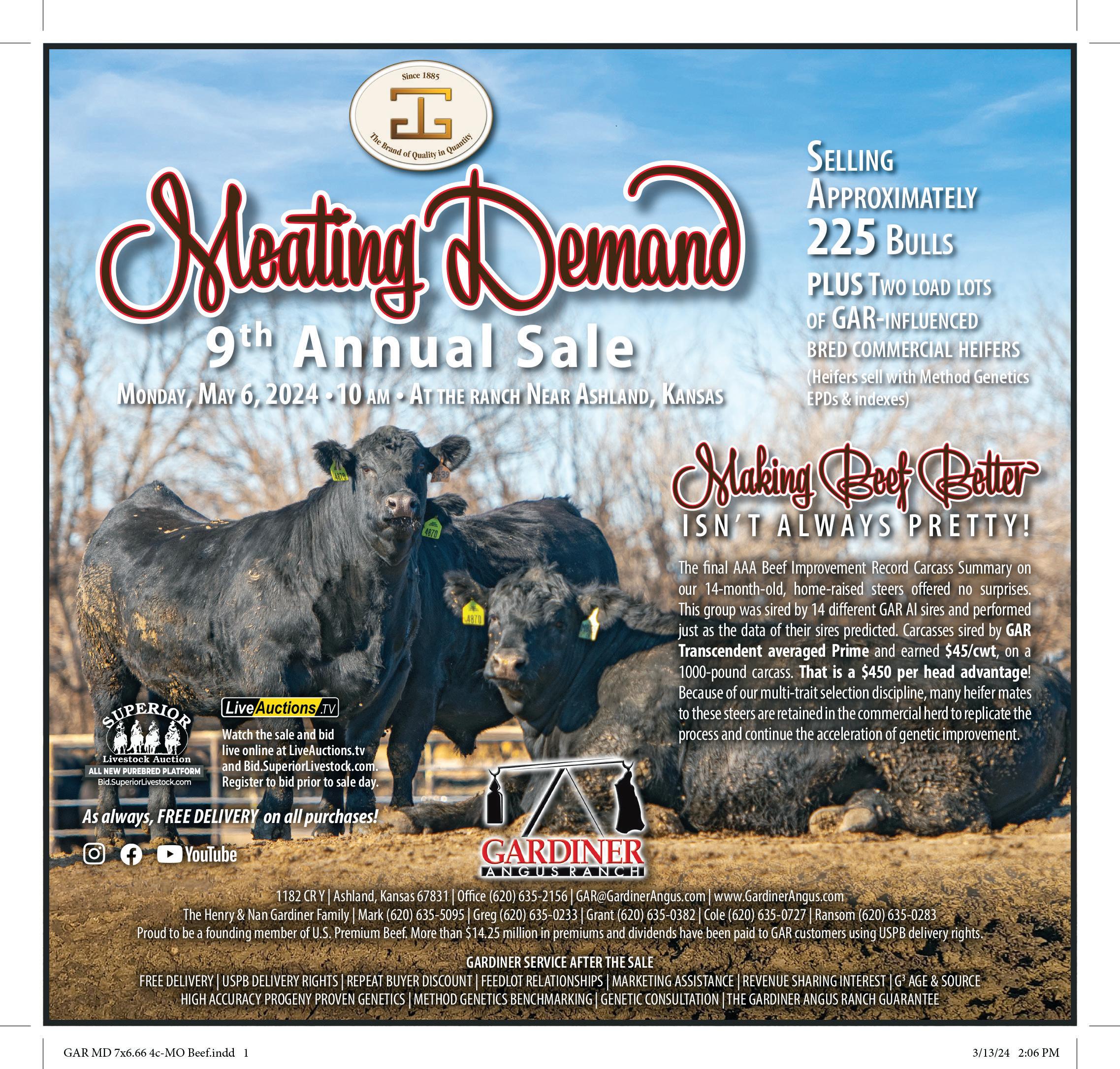 May 6 Gardiner Angus Ranch Meating Demand Sale, Ashland, KS