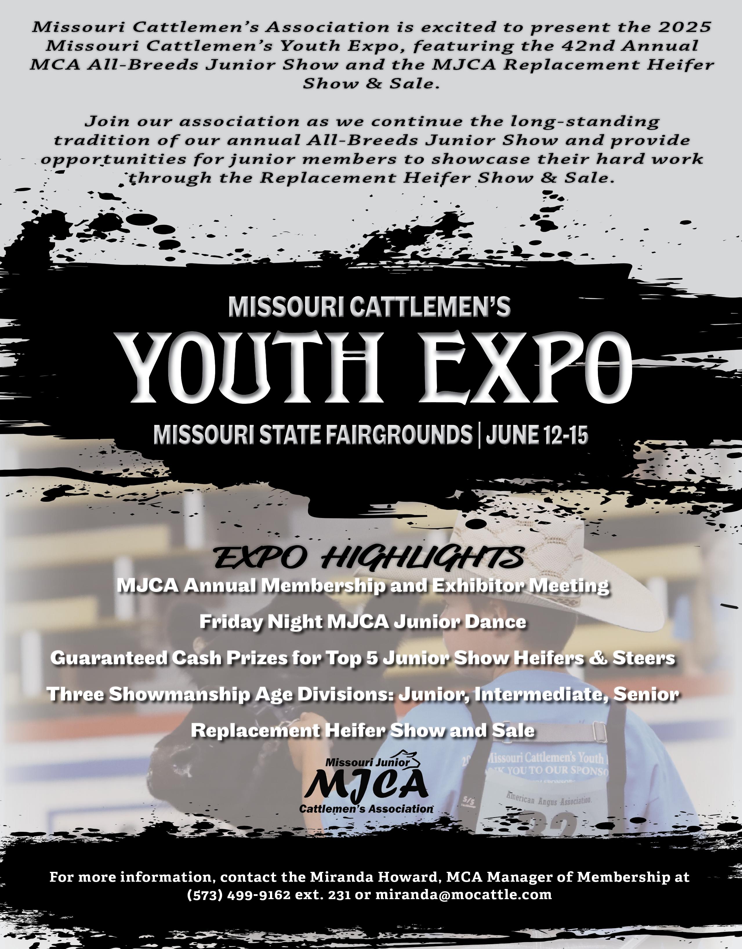 It is almost time for the “can’t miss” weekend of the summer. The weekend will include both the 42nd Annual MCA All-Breeds Junior Show and the 3rd Annual MJCA Replacement Heifer Show & Sale. The expo will feature long-held traditions such as the MJCA Photo Contest, MJCA board interviews and elections, and the MJCA annual meeting while also bringing in new opportunities for junior members to feature their hard work at the state level. To learn more about both events, please turn to PAGES 31-35 or visit mocattle.com under junior programs.