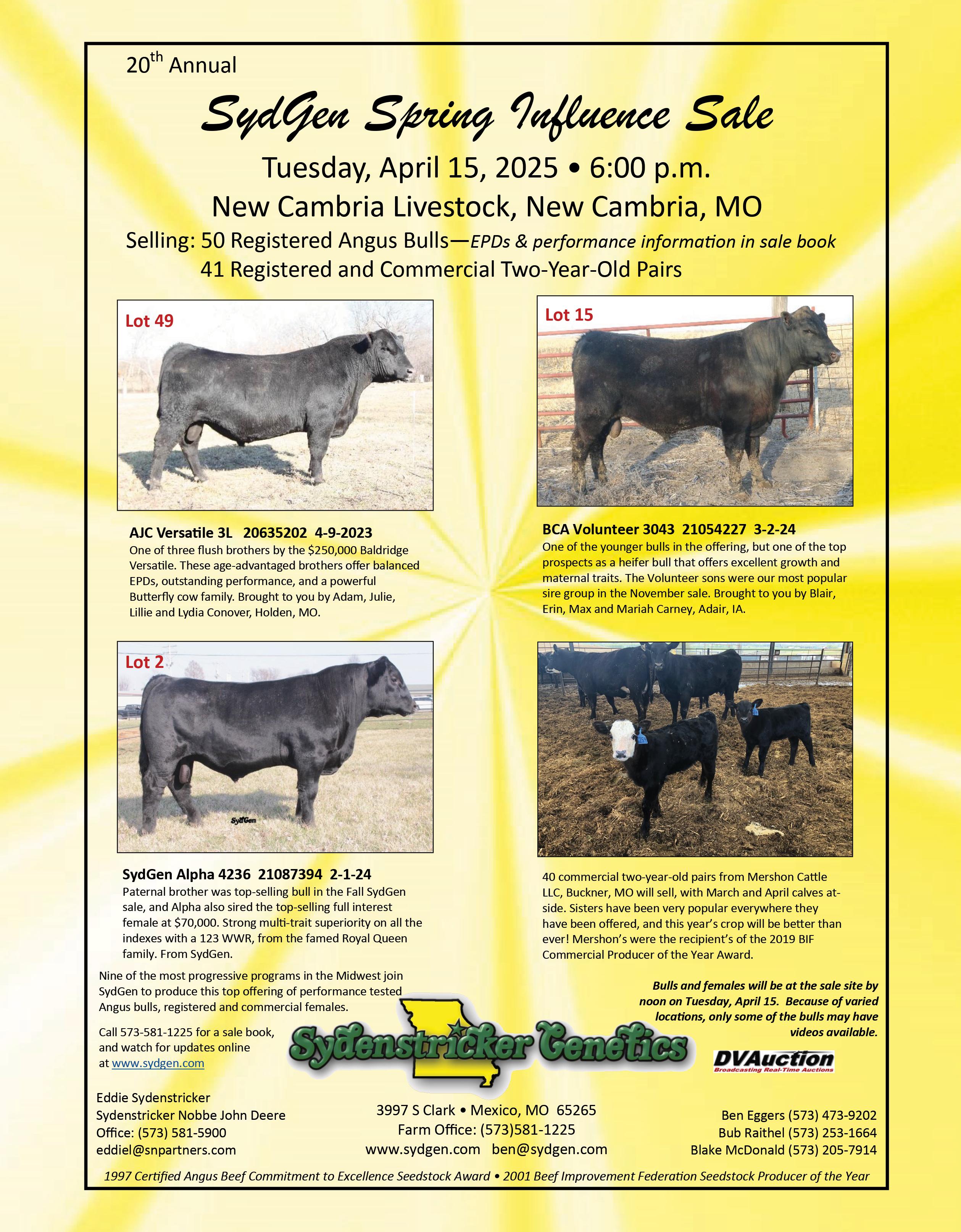 April 15 Sydenstricker Influence Sale, New Cambria, MO