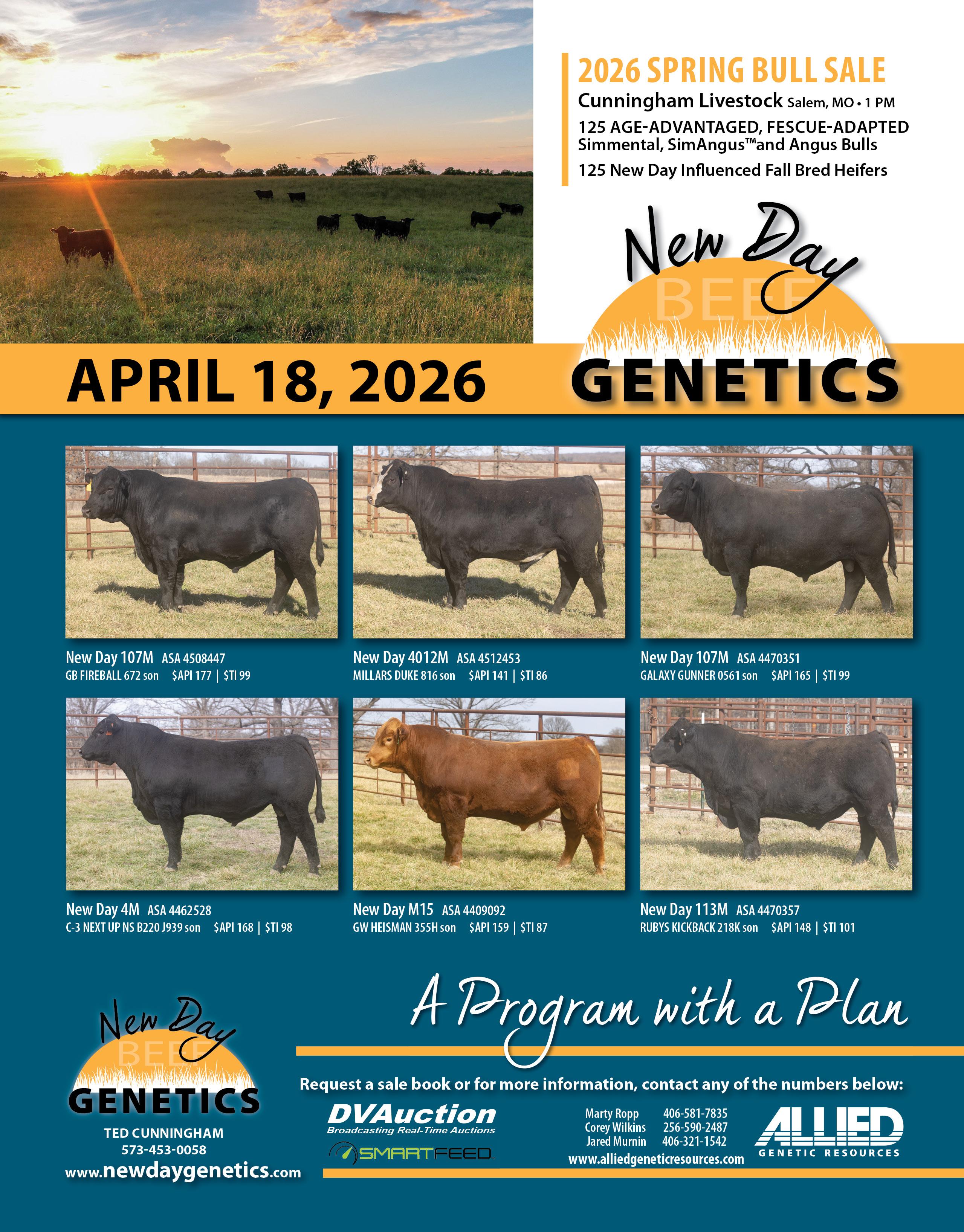 April 18 New Day Beef Genetics Spring Bull Sale, Salem, MO