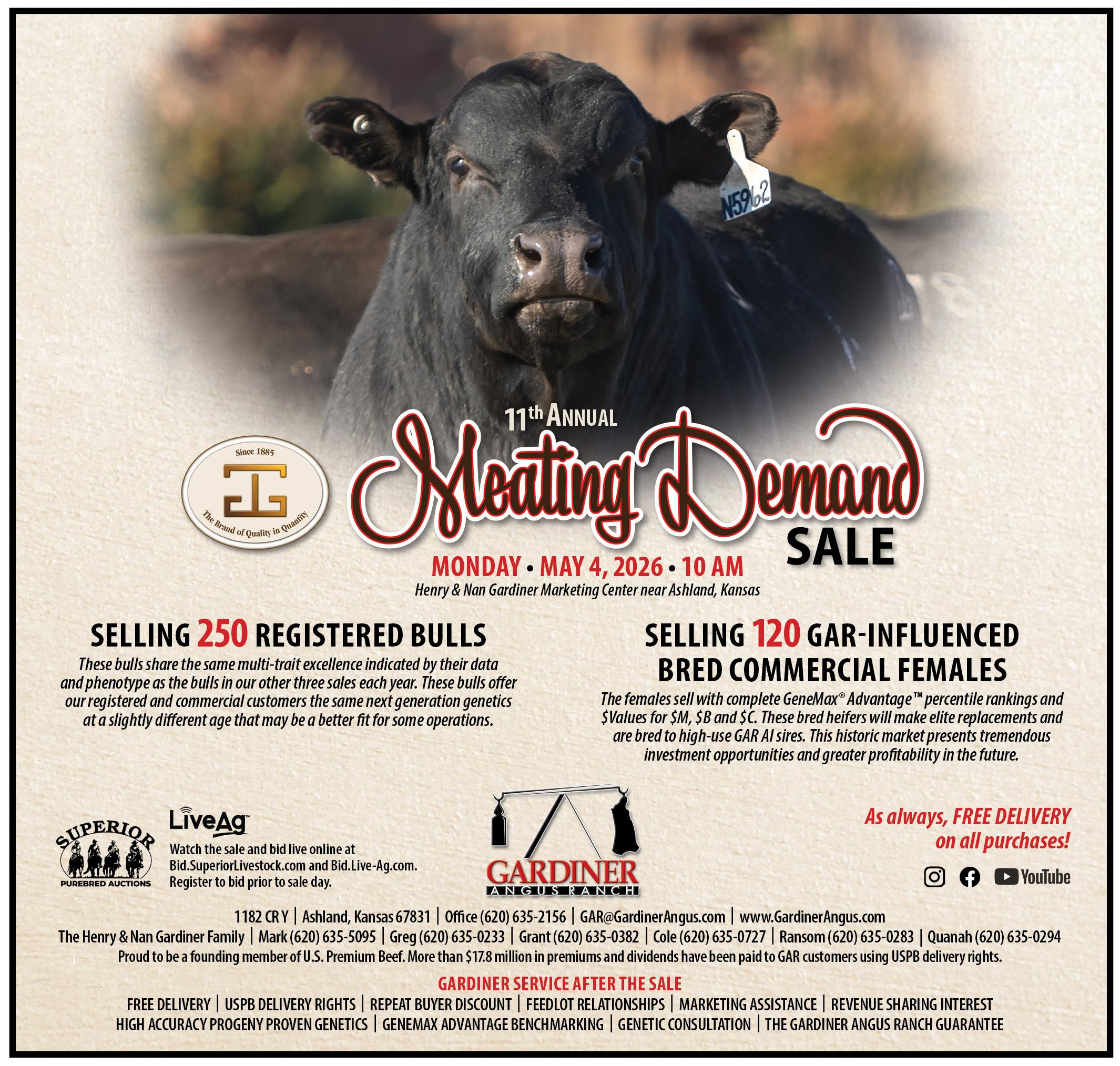 May 4 Gardiner Angus Meating Demand Sale, Ashland, KS