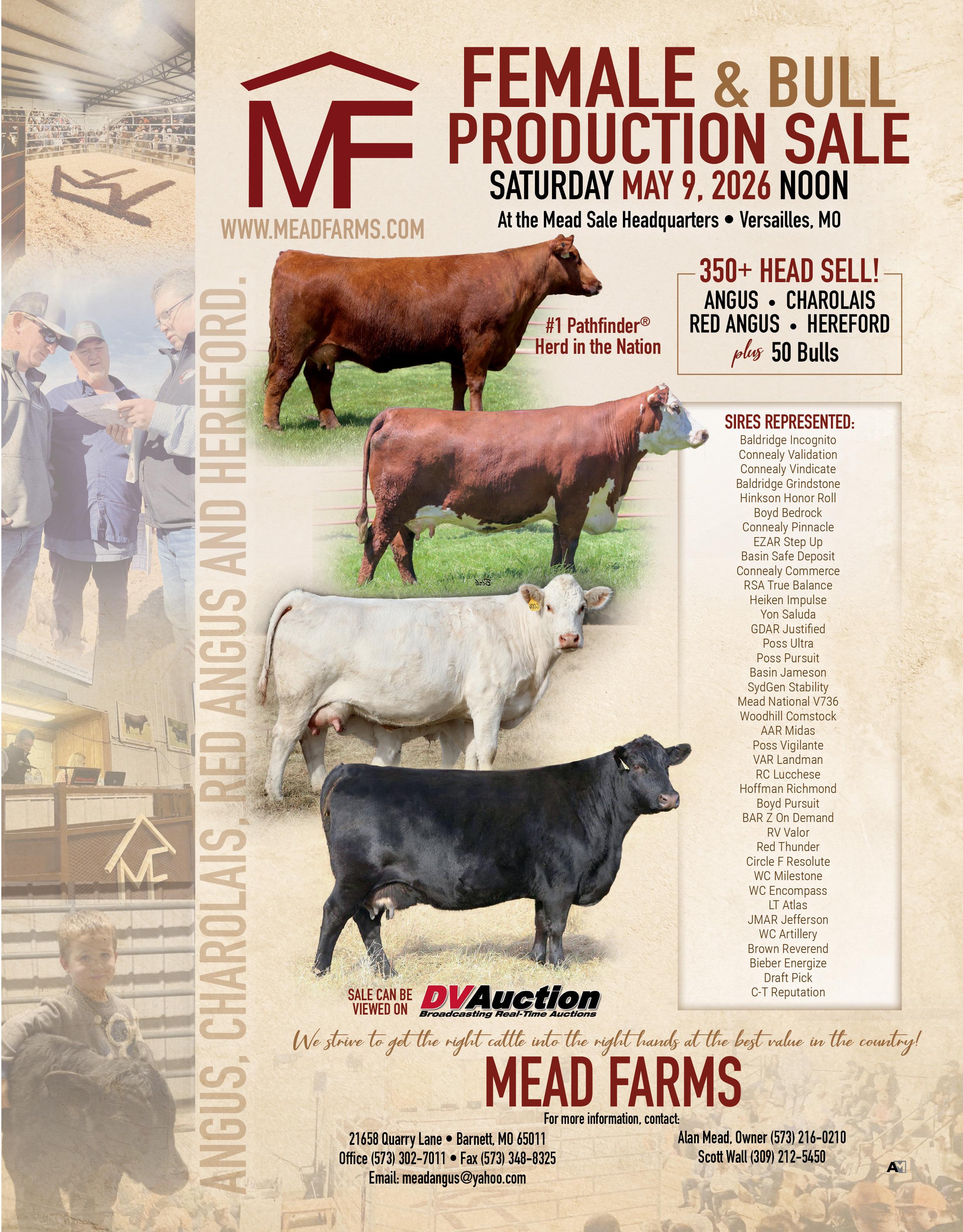 May 9 Mead Farms Spring Female & Bull Production Sale, Versailles, MO