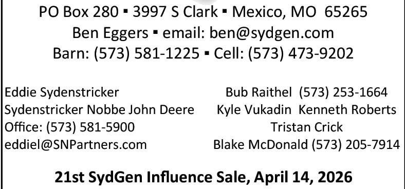 Sydenstricker Influence Sale, New Cambria, MO