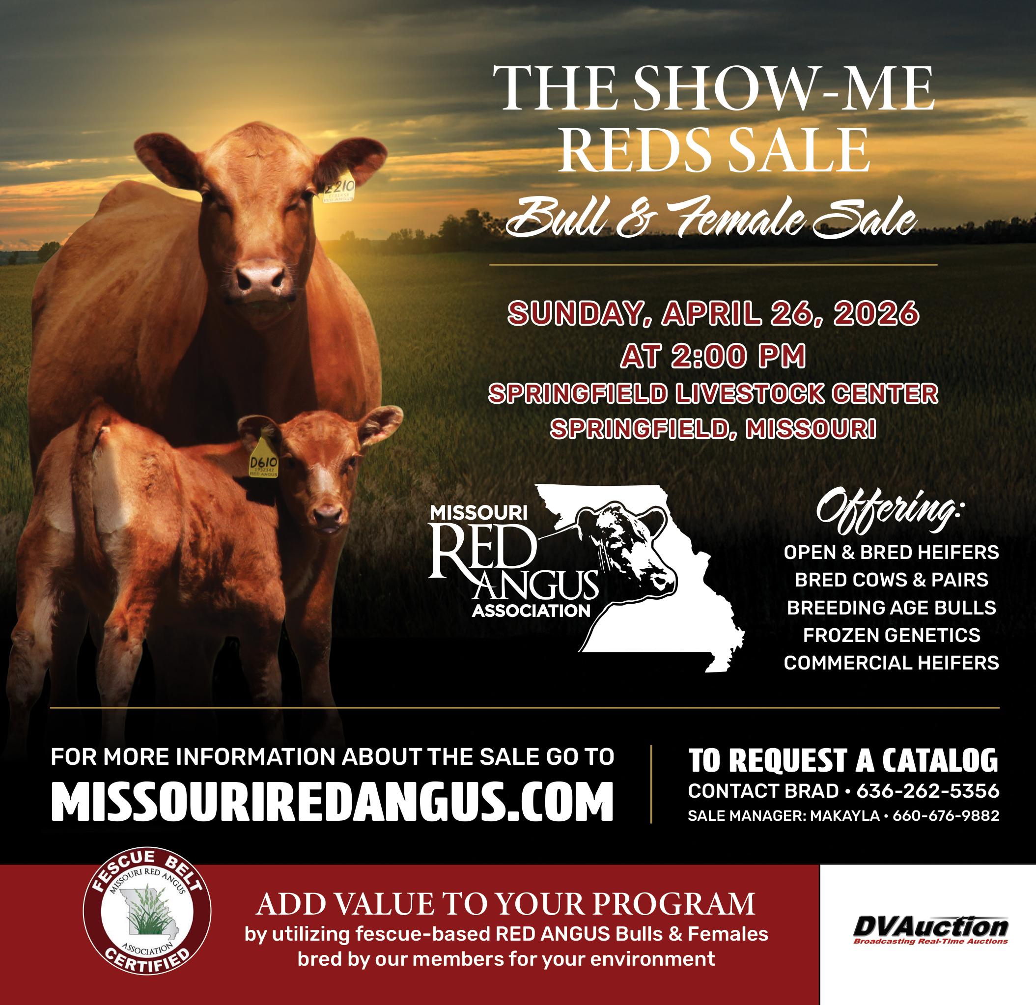 April 26 Missouri Red Angus Association - The Show-Me Reds Sale, Springfield, MO