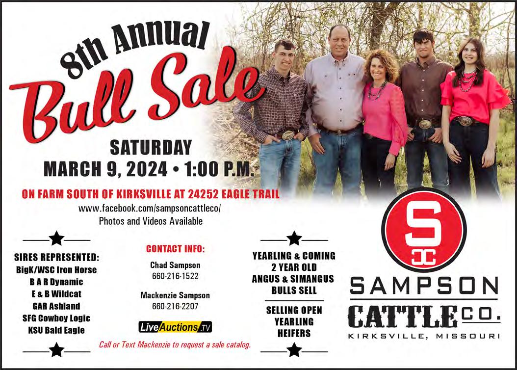 March 9 Sampson Annual Bull Sale, Kirksville, MO
