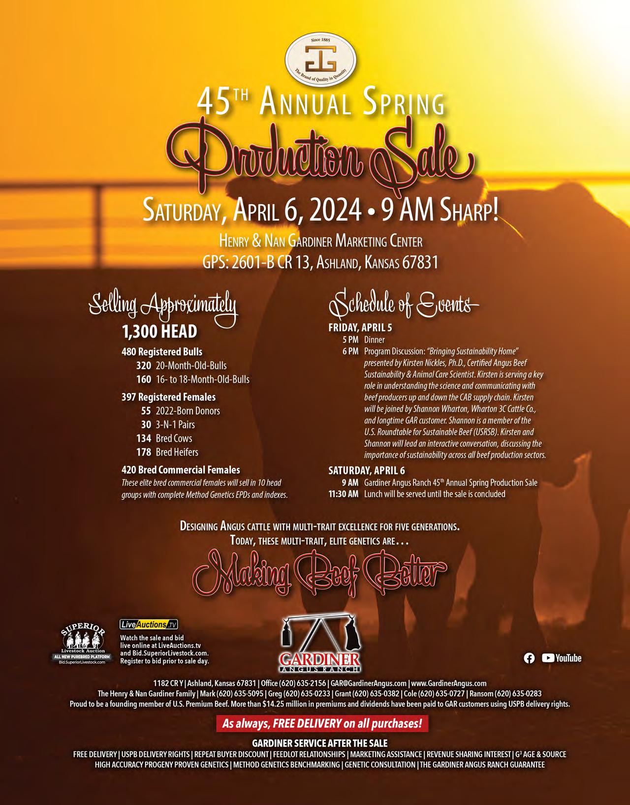 April 6 Ga rdiner Angus Ranch Spring Production Sale, Ashland, KS