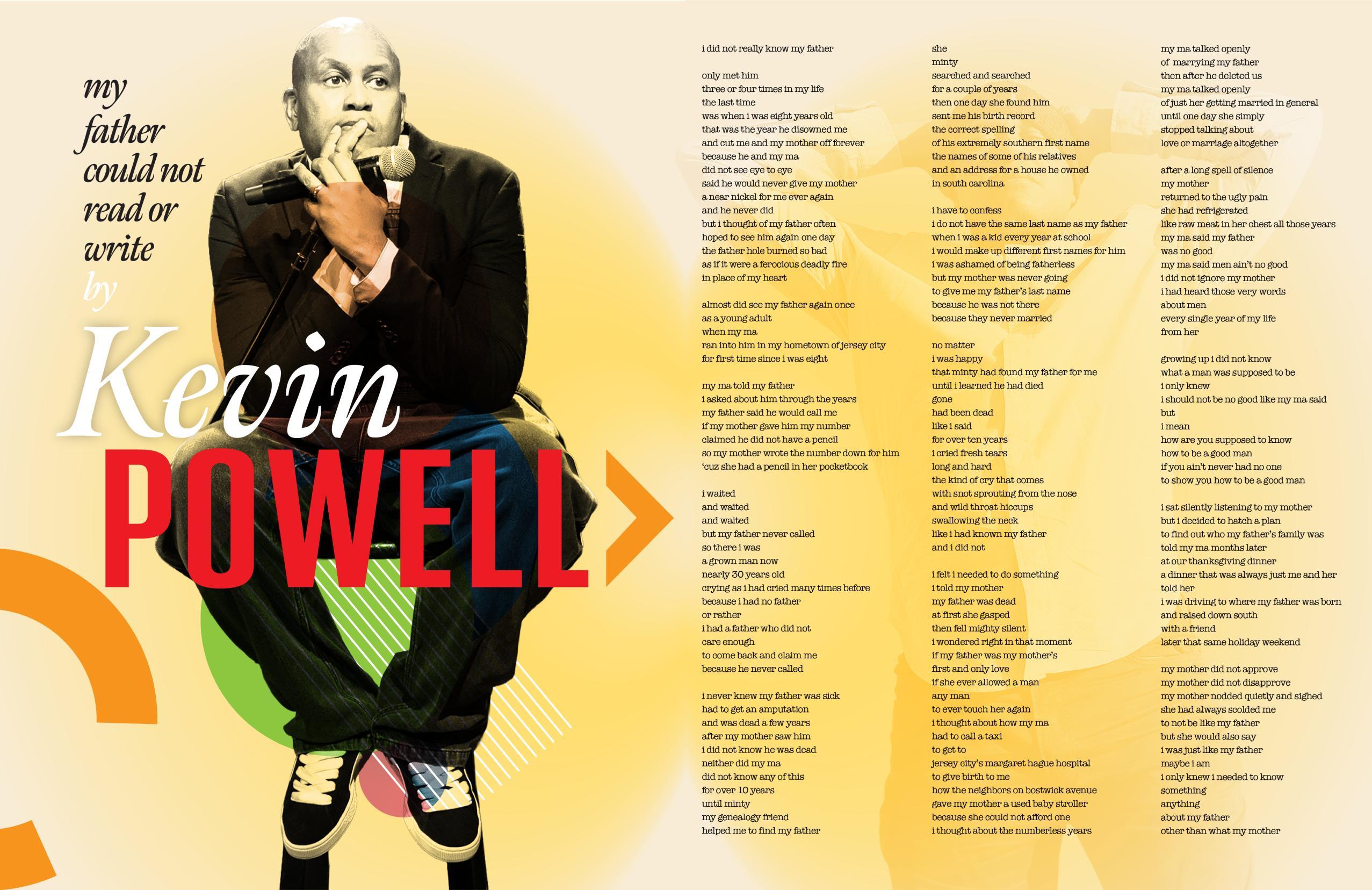 CODE M was born to showcase and highlight Black people who are making a difference for their businesses, community, and their families. We are proud to celebrate these men this month and we encourage you to do the same thing. 40 KEVIN POWELL Grammy-nominated poet explores fatherhood, manhood and love with his new ON THE COVER poetry book.