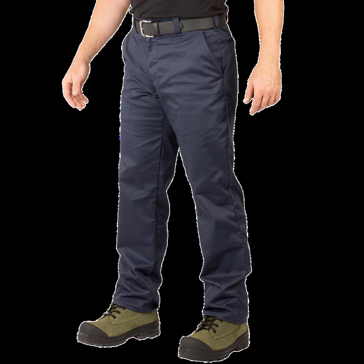 Heavy-Duty Twill | Ample legs for more comfort | Long life dye | Permanent press | Brass zipper & button front closure | 2 reinforced front pockets