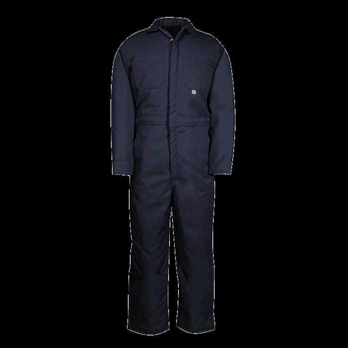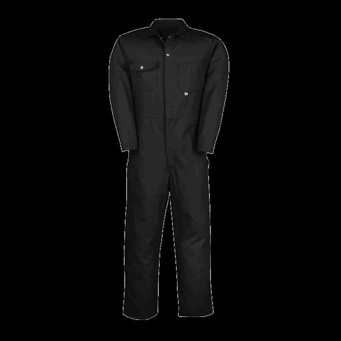 2 front chest pockets | Right front chest pocket with flap and snap closure | 2 slash pockets and side openings at waist | Snap closure on collar | Two-way zipper front closure | Cuff with concealed snap closure | 2 large back pockets | Tool pocket on right leg | Hammer loop on left leg | Pleated back | Bar-tacked at all stress points | Elastic on each side of waistband