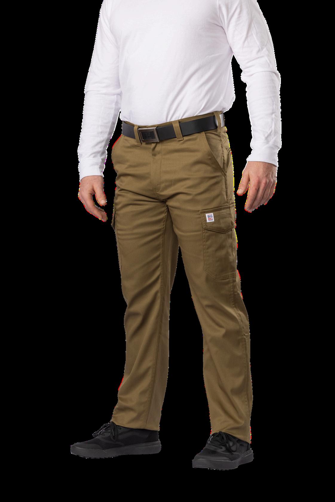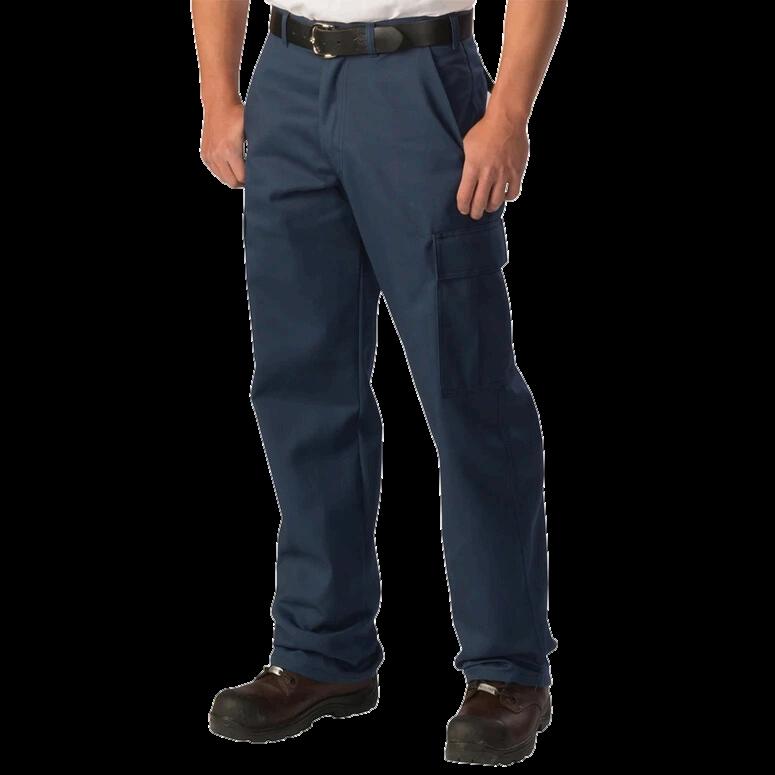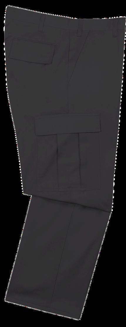 Permanent press, never needs ironing | Relaxed fit | Plain front with banded waistband | 2 expandable cargo pocket with flap closure | Heavy duty brass zipper | 2 rear pockets
