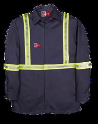 Hemmed front with snap closure / Cuffs with button closure / Back yoke / High resistance thread / Bartacked at all stress point