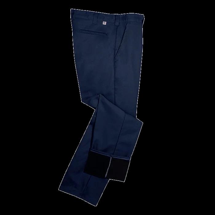 Sergé ultra-résistant | Jambes amples pour plus de confort | Teinture longue durée | Repassage permanent | Fermeture avant avec bouton et glissière en laiton | 2 poches avant