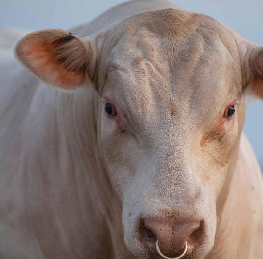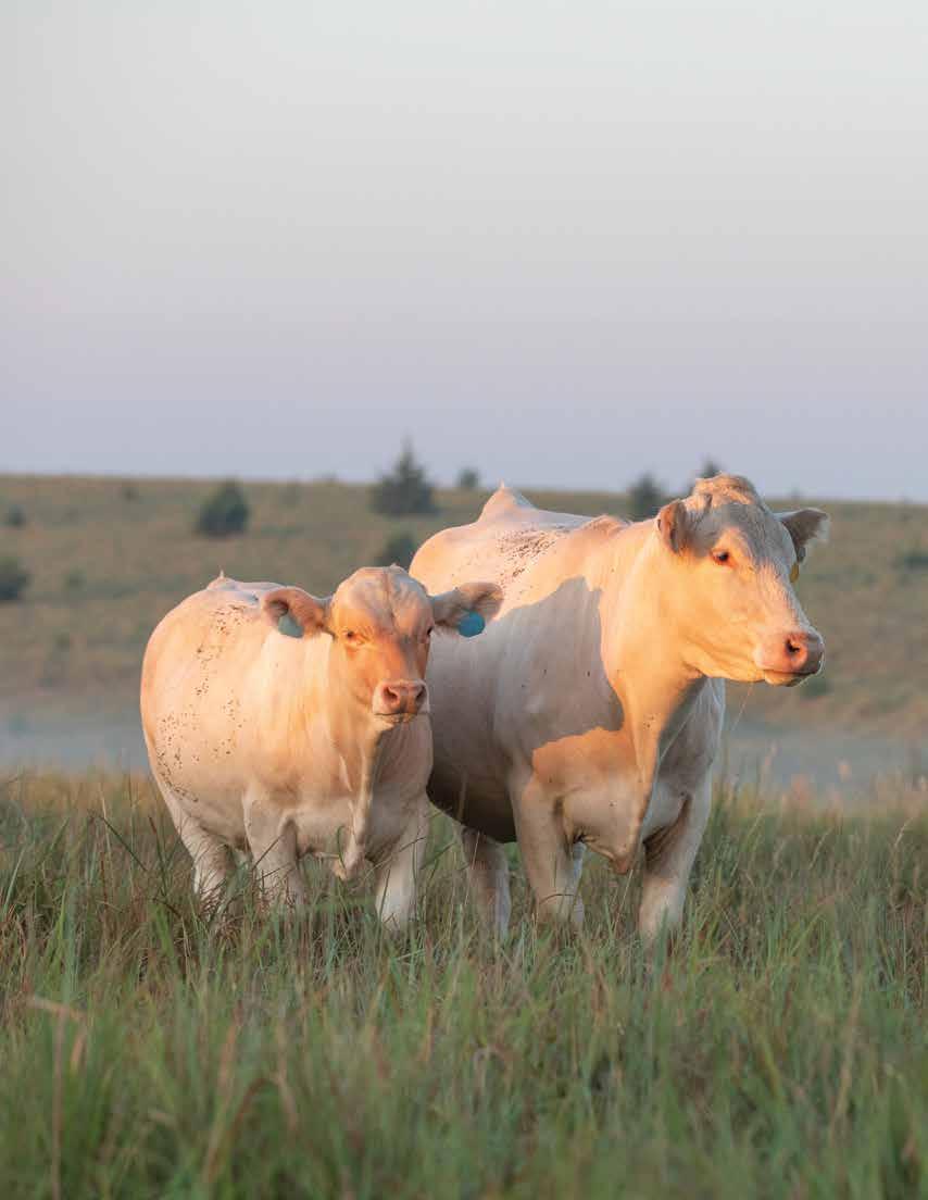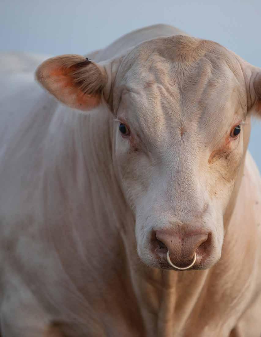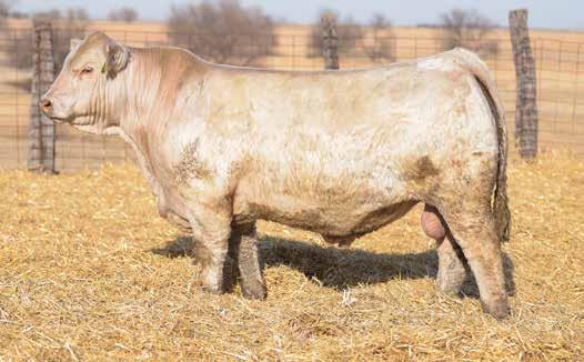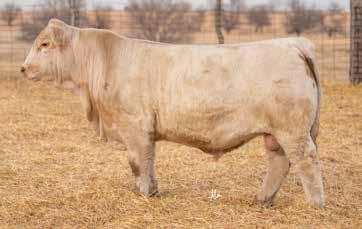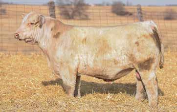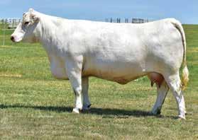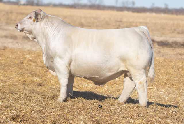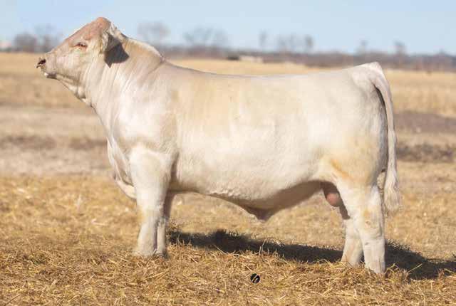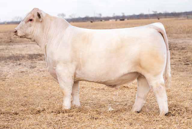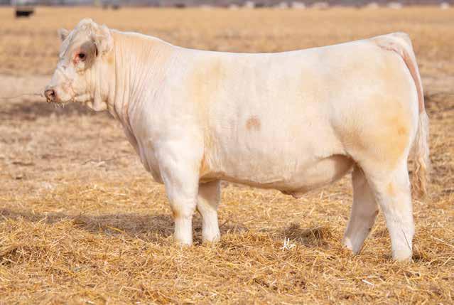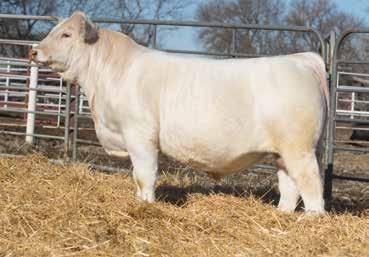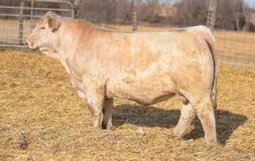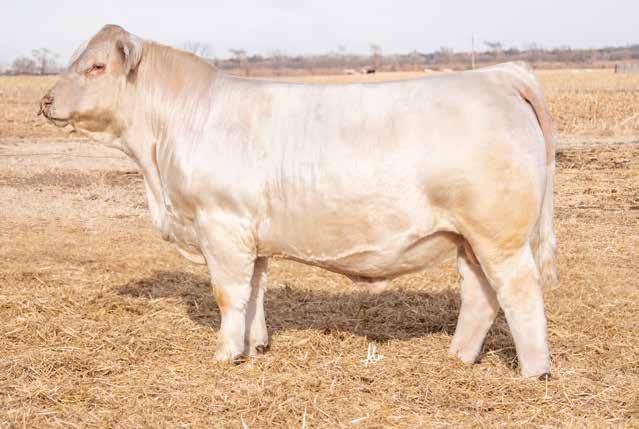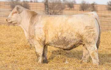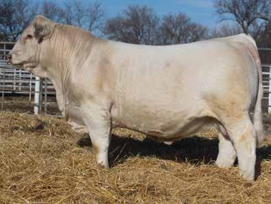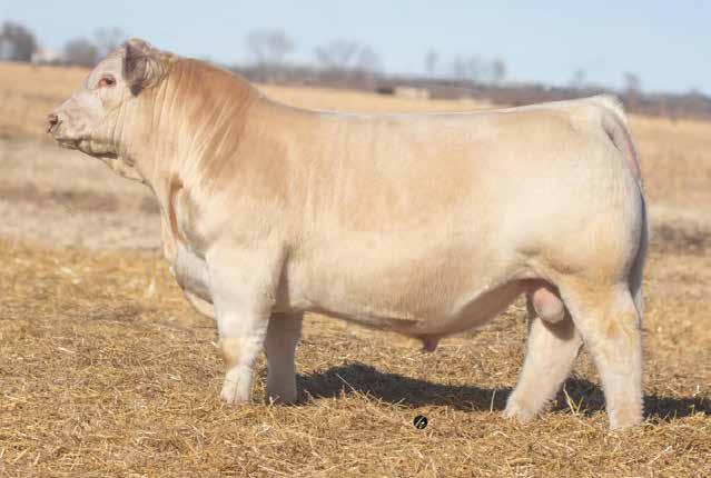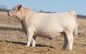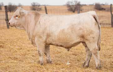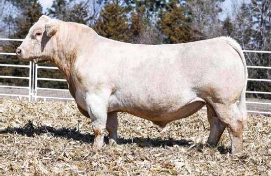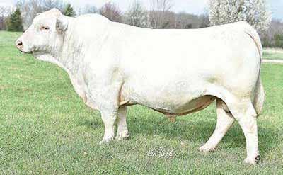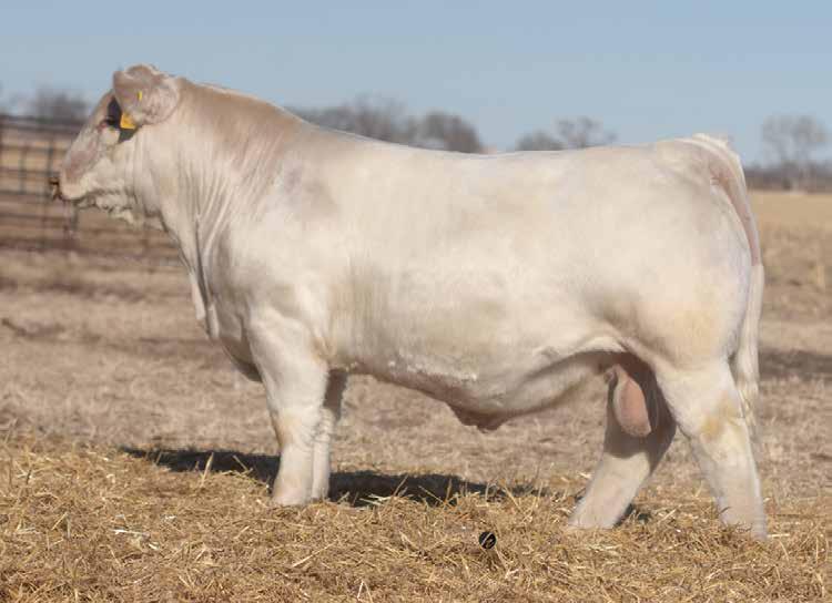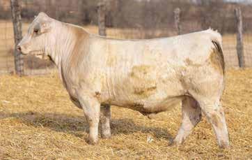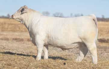 Heavy structured, powerfully constructed with a herd bull look. This maternally bred sire still emphasizes the terminal strengths known to the Charolais breed.