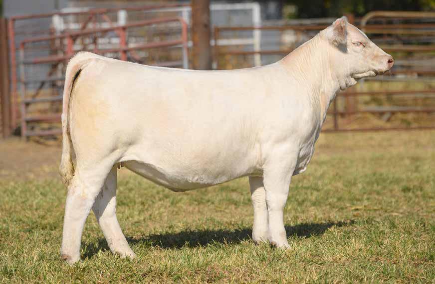 Here is a direct daughter of the great WC Benelli 2134 P ET that was bred in the respected M&M Charolais program at Perry, Oklahoma. The dam of 4539 is a top LT Wyoming Wind 4020 Pld daughter that traces to the Sir Duke influence. A son of 4539 is working for Matt Bargen of Superior, Nebraska. Another daughter of 4539 sired by CCC WC Resource 417 was successfully shown by Mason this summer at the National Junior Heifer show in Perry, Georgia. Presented with 2B Cattle Company, TX.