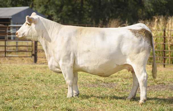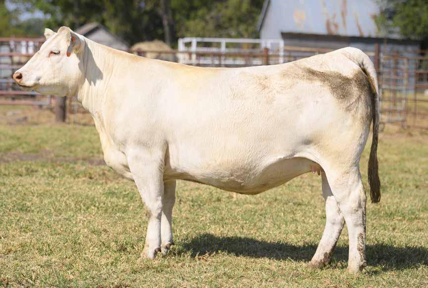 8606 is the Milestone sired daughter of the 48 th Annual National Champion Charolais Female, WC Kendall 5173 P ET, a featured lot within this very offering. CCC Ms Kendall 8606 ET is elegant in terms of her balance and eye appeal, smooth shouldered, bold centered, and possess a high quality udder design. She will have a calf sired by the $35,000 CCC 2B Gunslinger 9030 P before sale day is here! Presented with Mabry Brothers Livestock.