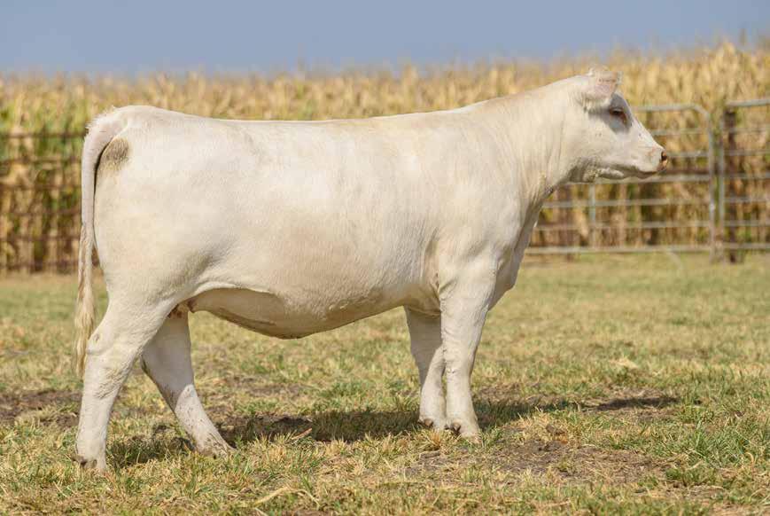 0518 is a clean made, angular daughter of CCC Revival 8121 P ET, the top Resource son that we own in partnership with Doll Charolais of New Salem, North Dakota. Her dam is an outcross pedigree female that has produced herd bulls for Russell Heller of Texas and Trent Wilson of Missouri. 0518 ranks among the elite 8% for BW, top 25% CE, top 25% WW, top 20% MTL, and top 20% Marb. She offers an elite number profile to accompany her functional build.