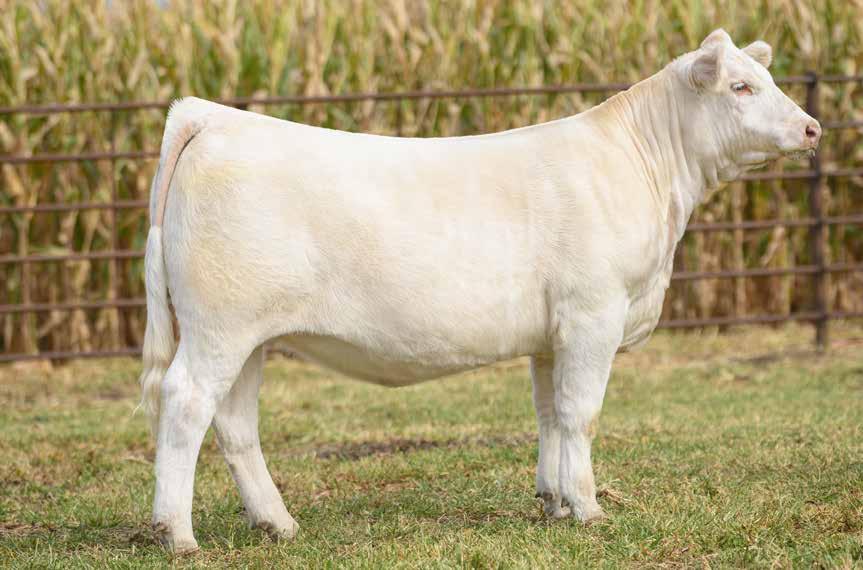 The influence 0641 has had on the Charolais business is certainly difficult to mirror. Countless 0641 daughters have found their way to the backdrop over the last decade. National Champion daughters of 0641 would include Ivory Angel, Firefly, and Angela to name a few. SULL Made to Impress is sired by SHF Fire Power 0080, the Shaffer-bred Firewater son that is also the sire of the 2017 American Royal Reserve Grand Champion, SHF Power Up 1677. Genetically she is a three-quarter sister in blood to countless National Champions, donor dams, herd bulls, and high sellers. Presented with Mabry Brothers Livestock, TX.