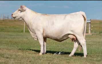 1059 is backed by 655, an incredibly productive full sister to Redemption. Her first daughter was shown successfully by Makayla Houck of Iowa, and her next calf was our 2021 high-selling bull, Mahomes, going to Rennert Ranch in Nebraska. The guess work is done on 1059. If you like them square built, smooth made with extra belly and scrotal, give Lark a look. Retaining 1/3 semen interest.