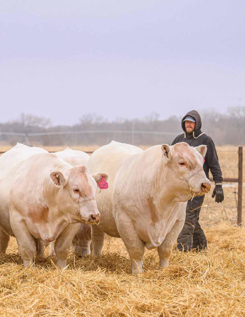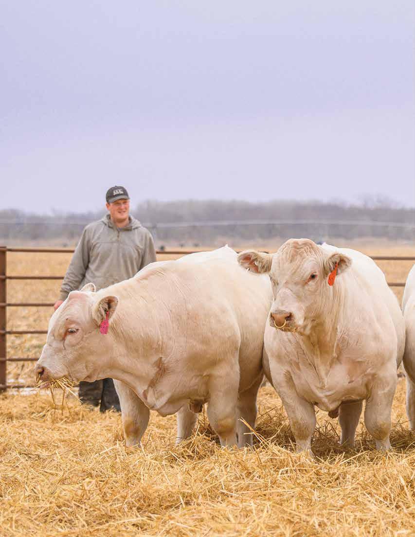 The only thing I’m more proud of than my white cattle is my beautiful family. We are blessed to be working with family every day and have multiple generations contributing at Grandpa Don and Grandma Hazel’s headquarters, where they started their Charolais business in 1956. My wife, Lindsay, steers the ship and my brother, Mason and future brother-in-law, Colby, make sure it isn’t taking on water. Along with our kids, Whitley, Rance, LaRae, Lindsay and I are extremely thankful for the help and support we get from our team and family to continue ranching another generation.
