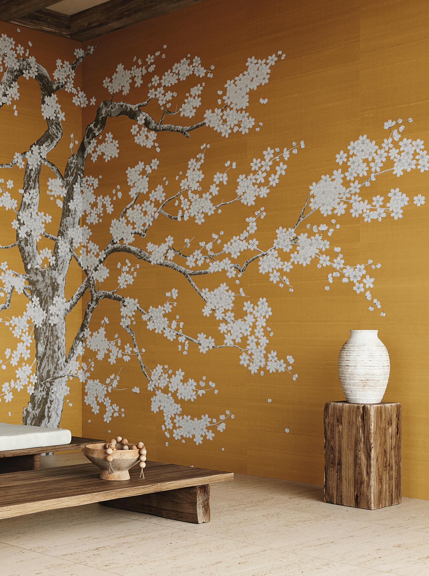 Phillip Jeffries Introduces Prelude. Immerse yourself in nature under a sprawling cherry blossom. Painterly petals on a majestic tree ground a space with quiet beauty. Solid companions that enhance Prelude’s versatility and custom design capabilities also look stunning on their own. Experience an aura of serenity and luxury.