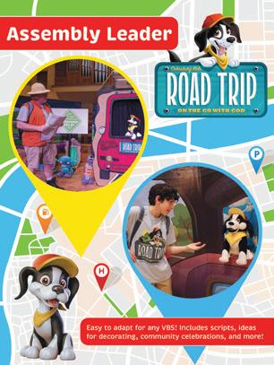 Road Trip takes place out on the open road in a super large, imagination-powered vehicle, big enough to take all the kids at your VBS, called Travelers, on amazing adventures to exciting destinations. During each assembly session, Travelers will join the Navigator (Assembly Leader) and Scout, an energetic and curious dog, and learn that God is with them in whatever situation they face. Each day, Scout and the Navigator lead the Travelers through twists, turns, excitement, and anticipation as they make their way to fictitiously familiar locations, face new challenges, and encounter new people and animals as they travel. With the help of great stories from the Navigators’ Guide (the Bible), Travelers will explore timeless Bible stories that show how people from the Old and New Testaments journeyed with God through many locations and situations and found strength in God’s presence wherever they went.