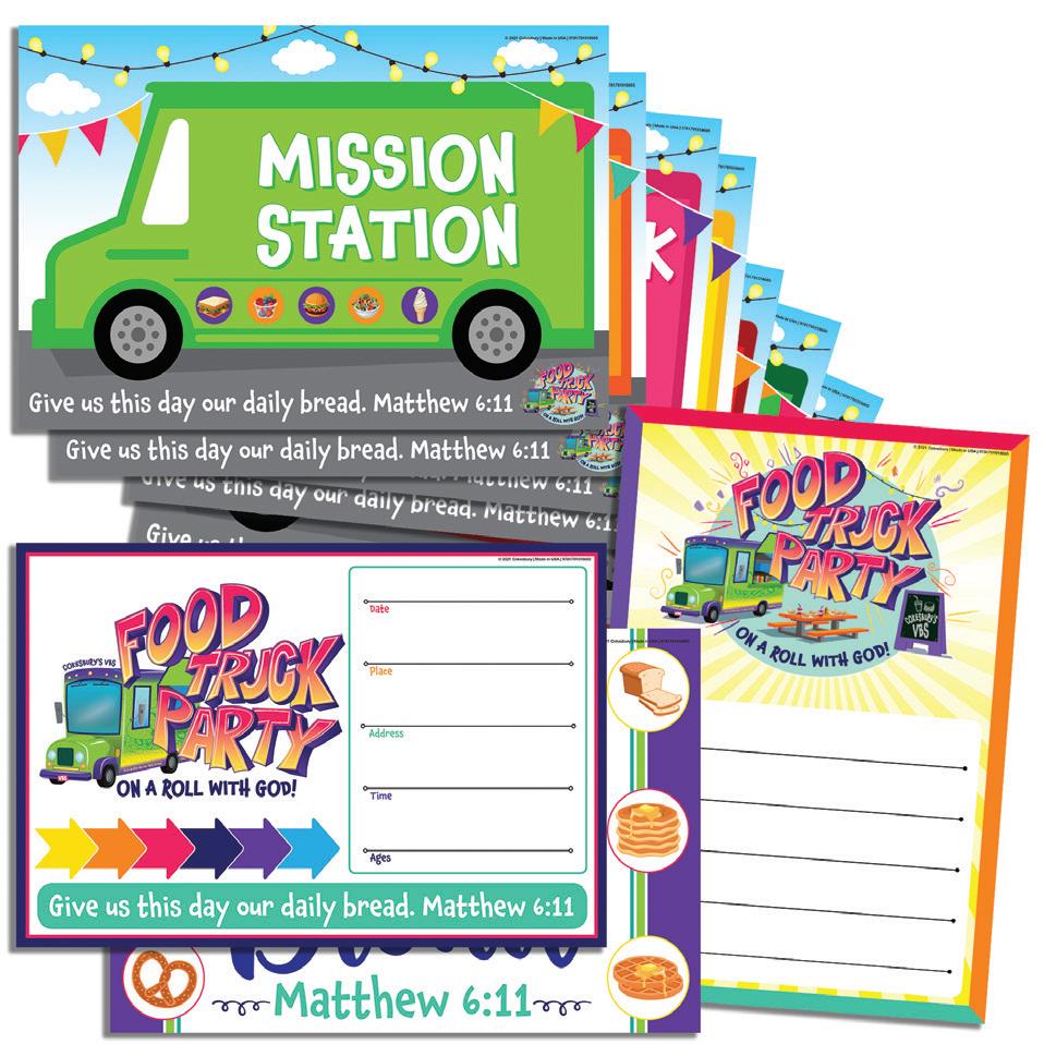 A publicity and decorating tool in one. Activity Center Signs direct children and leaders to all Food Truck Party VBS centers. (One sign for each activity center plus other directional signs.) The Publicity Pack makes it easy to create unique signage. Includes the Theme Verse, Key Learnings, the logo, and more! 11" x 16 ½".
