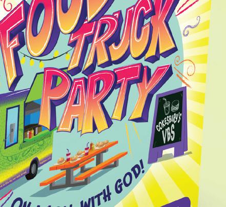 Inexpensive posters include the Food Truck Party logo, Theme Verse, and plenty of space to write VBS dates and details. 17" x 22".