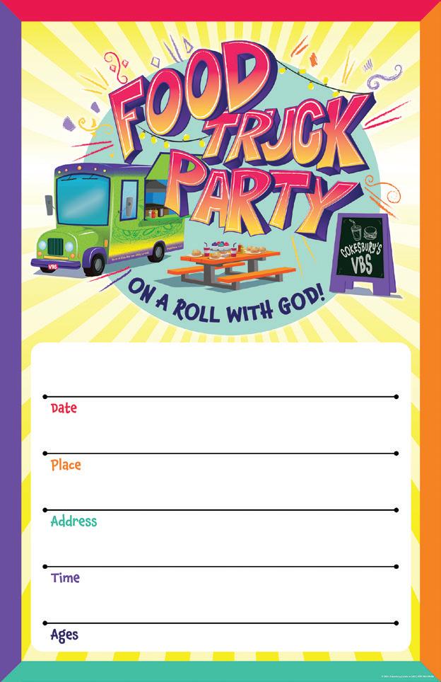 Share the news of your Food Truck Party VBS with your church and community by placing these posters everywhere! Colorful 22" x 34" poster includes logo and space for dates and details.