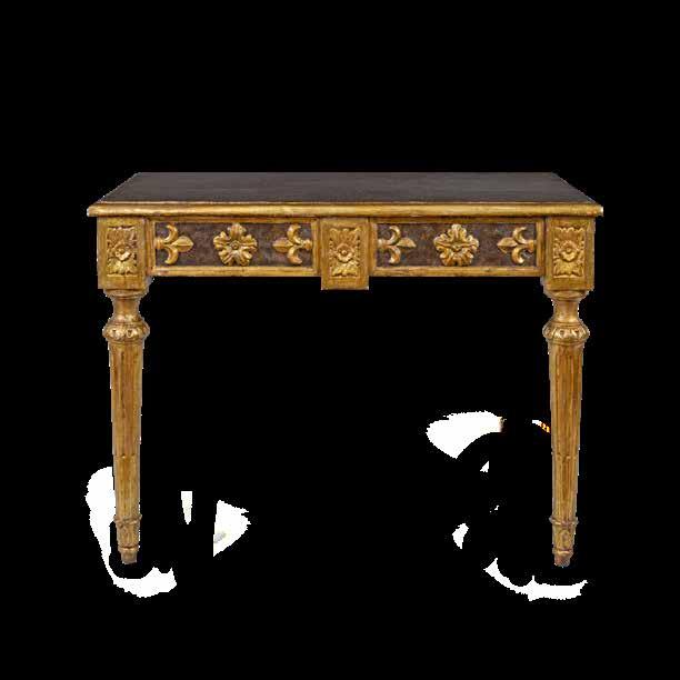 Roma, XIX Sec. raffigurante il “Foro romano”, poggiante su tavolo in legno laccato e parzialmente dorato con gambe di linea mossa, base a tripode 71x73 cm.