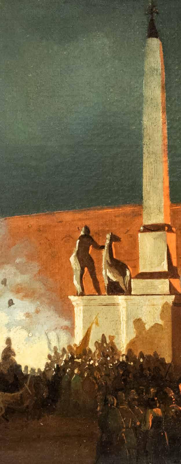 “Piazza del Popolo - Il Festino”, 1820, coppia di acqueforti acquarellate, entro cornici 21x46 cm.