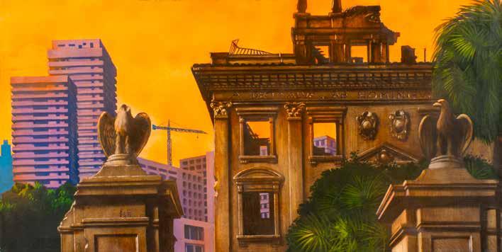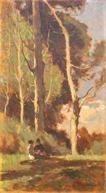 “Il sole nel bosco”, 1989, acrilico su tela, firmato in basso a destra e sul retro, entro cornice