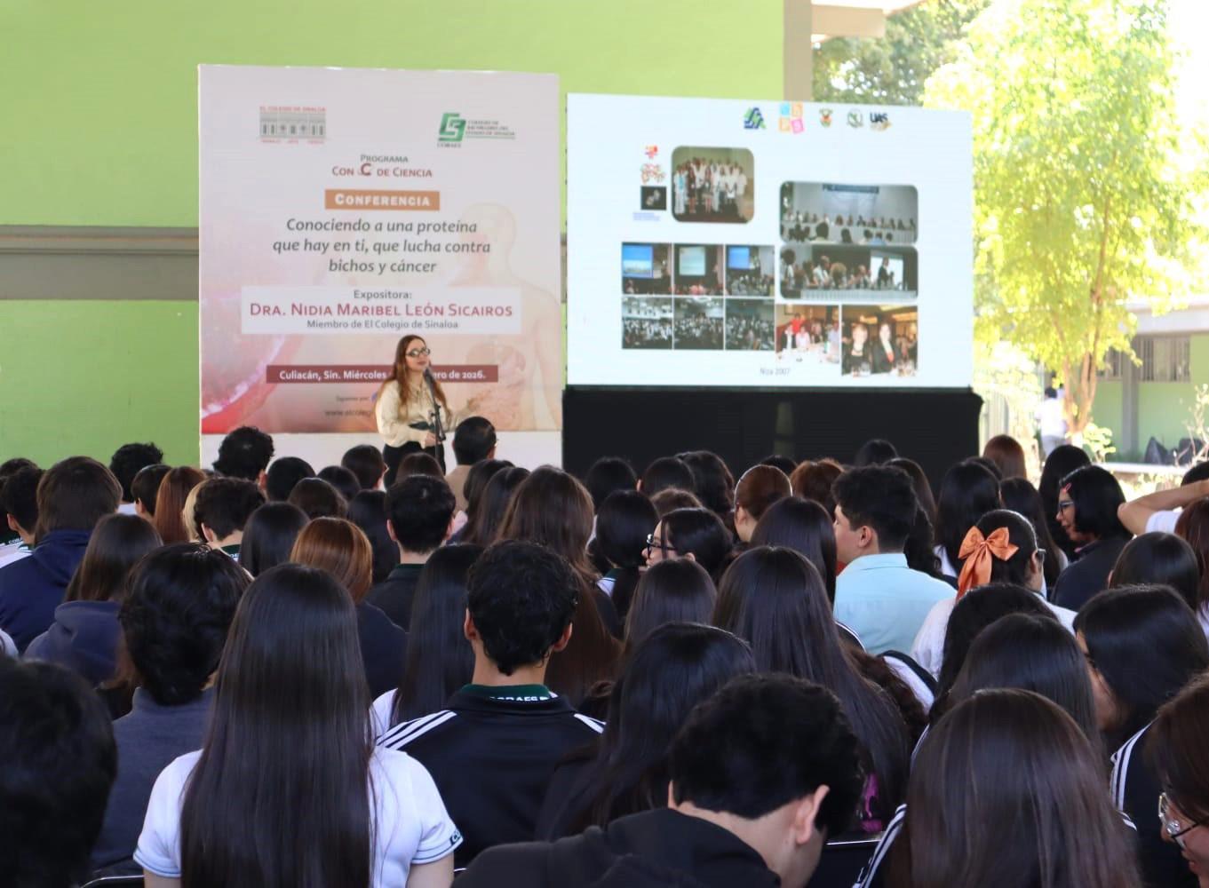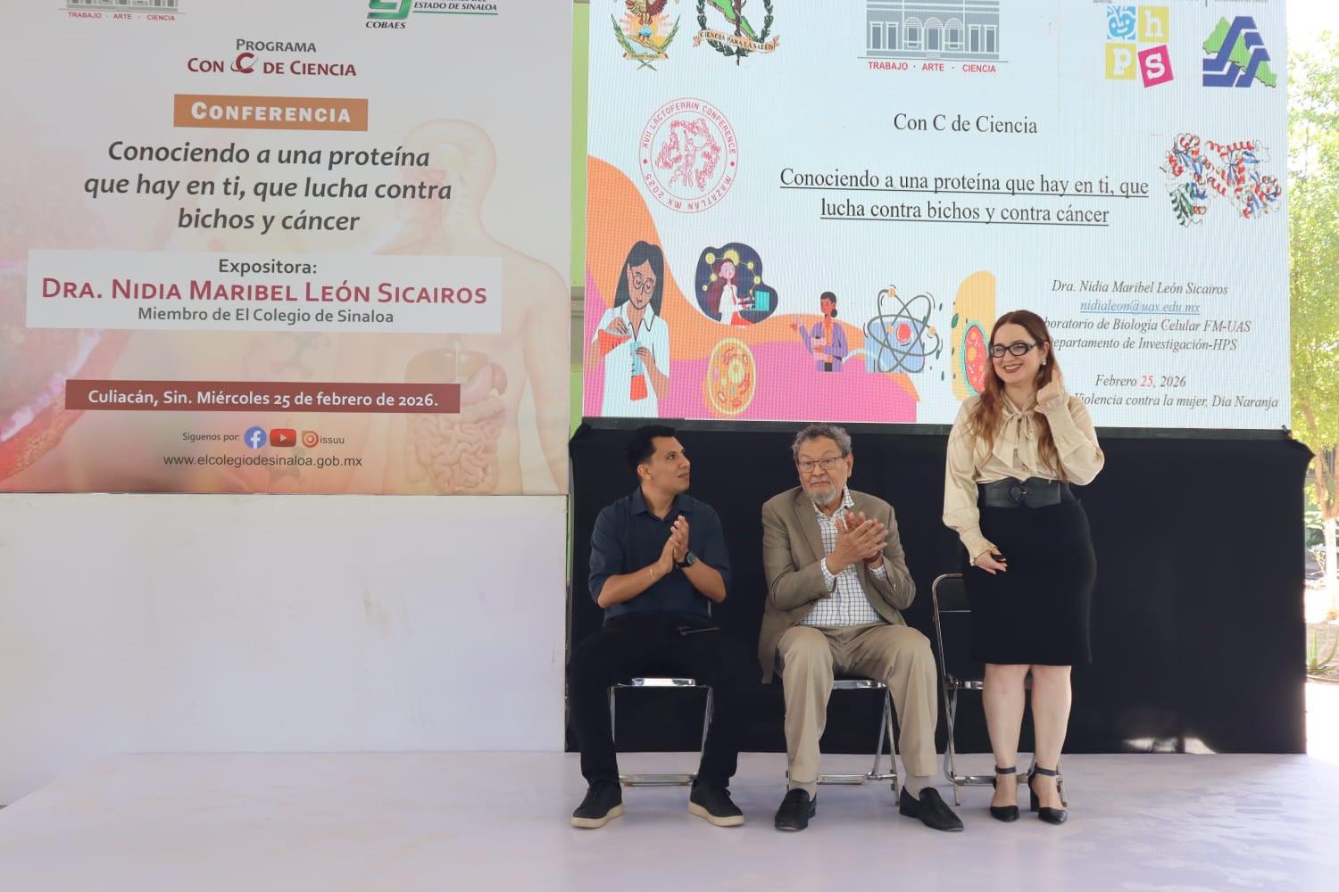 Para propiciar el interés por las Ciencias de la Salud entre los estudiantes de bachillerato, El Colegio de Sinaloa invitó a la Dra. Nidia León Sicairos —miembro de este organismo y especialista en Biología Celular— para impartir la conferencia: Conociendo a una proteína que hay en ti, que lucha contra bichos y cáncer, el miércoles 25 de febrero del año en curso, en el cobaes 25 de Culiacán, dentro del programa Con C de Ciencia que auspicia el organismo colegiado.