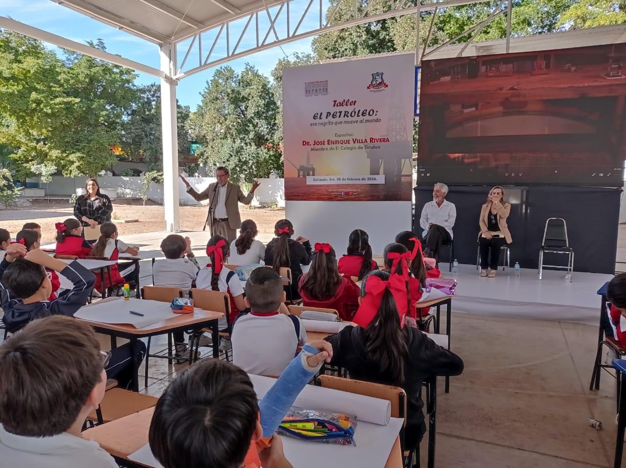 Enrique Villa Rivera imparte taller sobre el petróleo con alumnos de primaria en Culiacán (pág. 20).