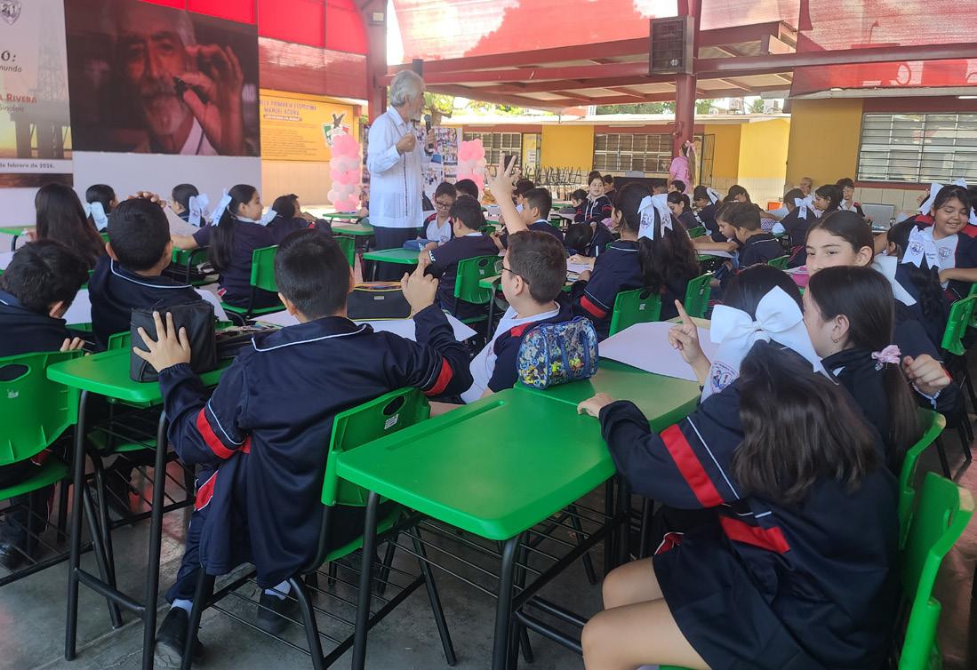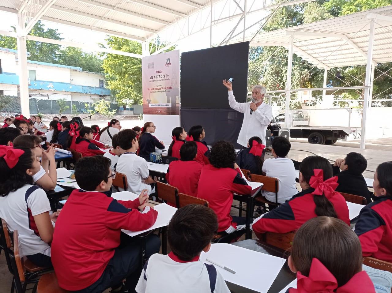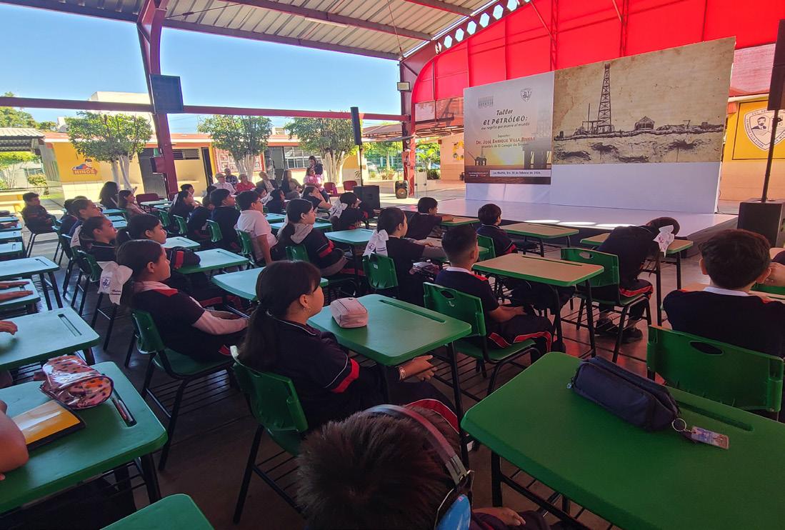 Enrique Villa Rivera analiza la trascendencia del petróleo en la Escuela Primaria “Álvaro Obregón”