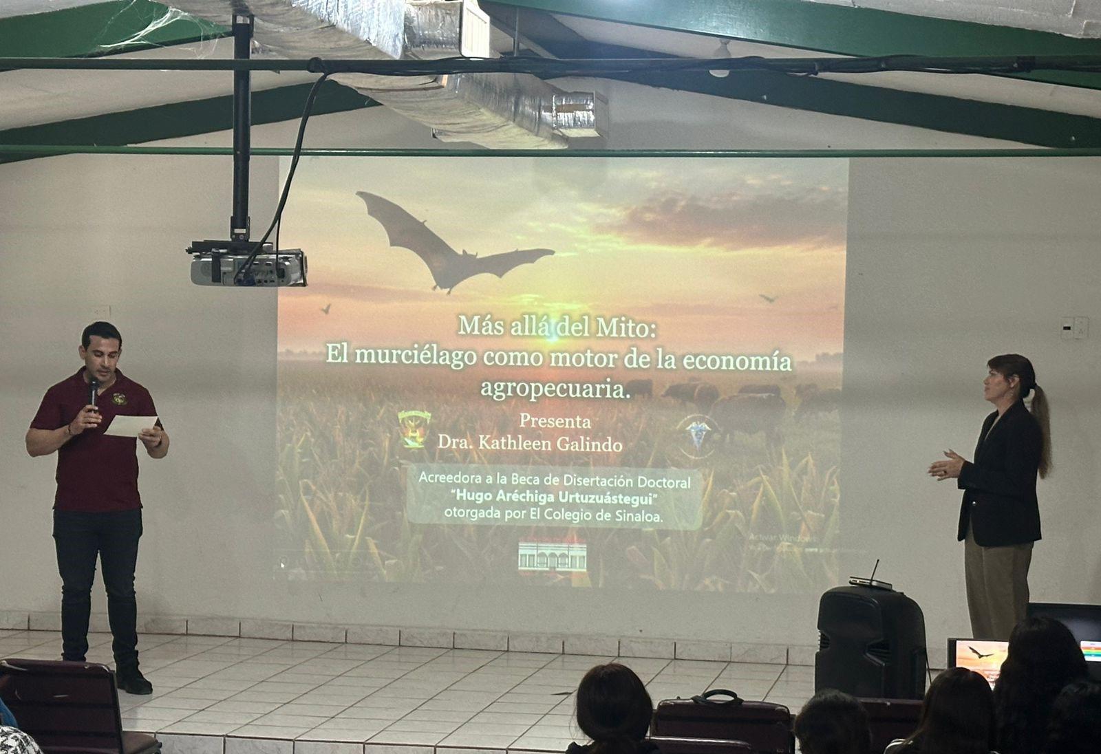 La Dra. Kathleen Fabiola Galindo Sánchez —profesora investigadora de la Facultad de Medicina Veterinaria y Zootecnia, uas— impartió la conferencia Mas allá del mito: el murciélago como motor de la economía agropecuaria en el Centro de Bachillerato Tecnológico Agropecuario Núm.133 en Recoveco, Mocorito, este jueves 26 de febrero del año en curso.