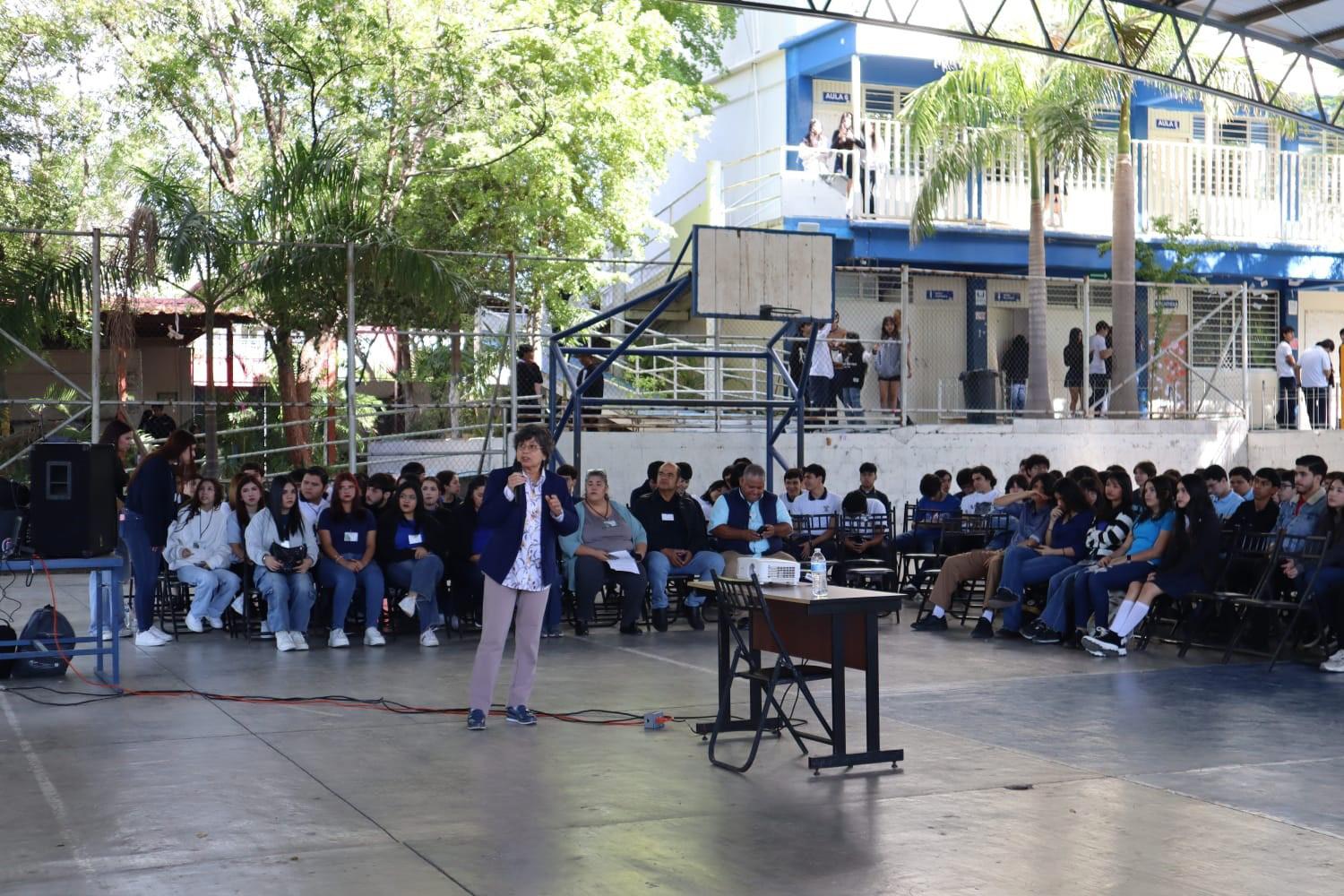 Kathleen Galindo imparte conferencia sobre la importancia del murciélago a estudiantes del cbta 133