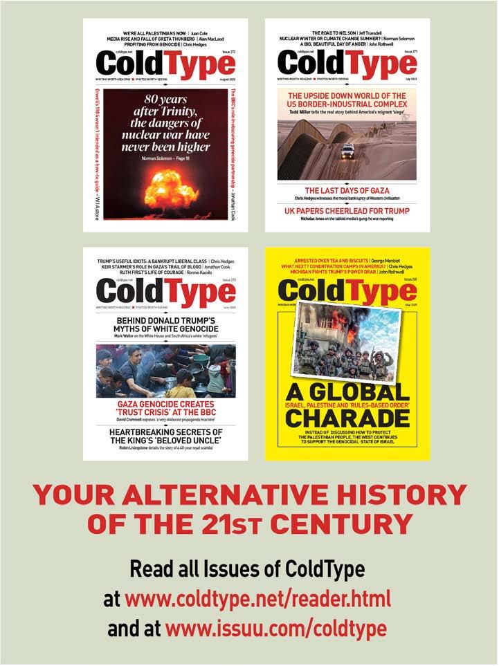 The contents of the articles in ColdType are the sole responsibility of the author(s). ColdType is not responsible for any inaccurate or incorrect statements they may contain