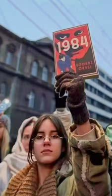 School activist Eve-Ann Stojanovic in the street protest holding the famous book 1984 by George Orwell Ivan Bjelic)