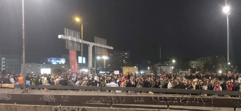 Protestors at Belgrade’s main crossroad Autokomanda in a 24-hours blockade