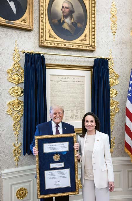 On 15 January, Venezuelan opposition leader María Corina Machado met President Donald J. Trump at the White House. An official photograph, shared by the White House on X the next day, shows President Trump smiling as he holds a large, ornate gold frame containing the 2025 Nobel Peace Prize medal. A plaque beneath it thanks him for his “extraordinary advocacy promoting liberty and prosperity,” citing his “Venezuelan Freedom Project” and his “principled and decisive action to secure a free Venezuela”. Machado stands beside him, composed and resolute.